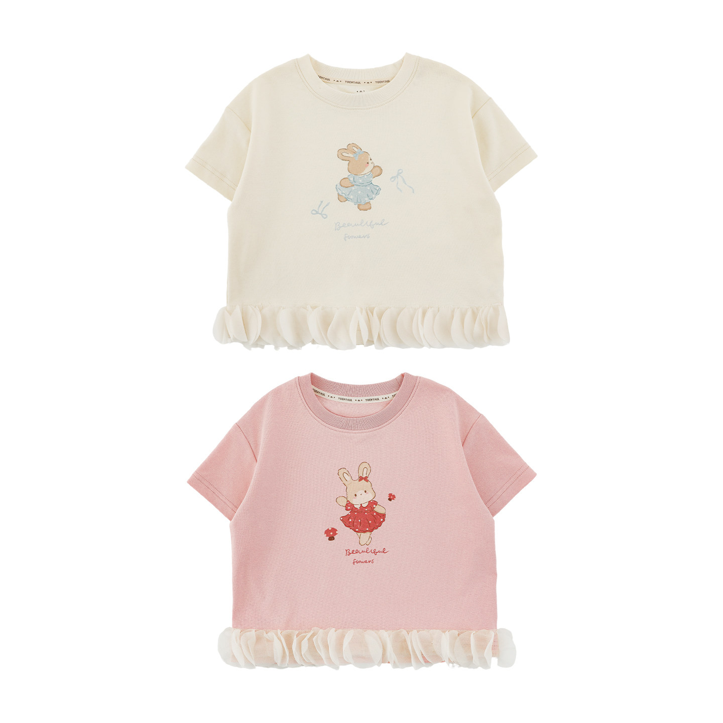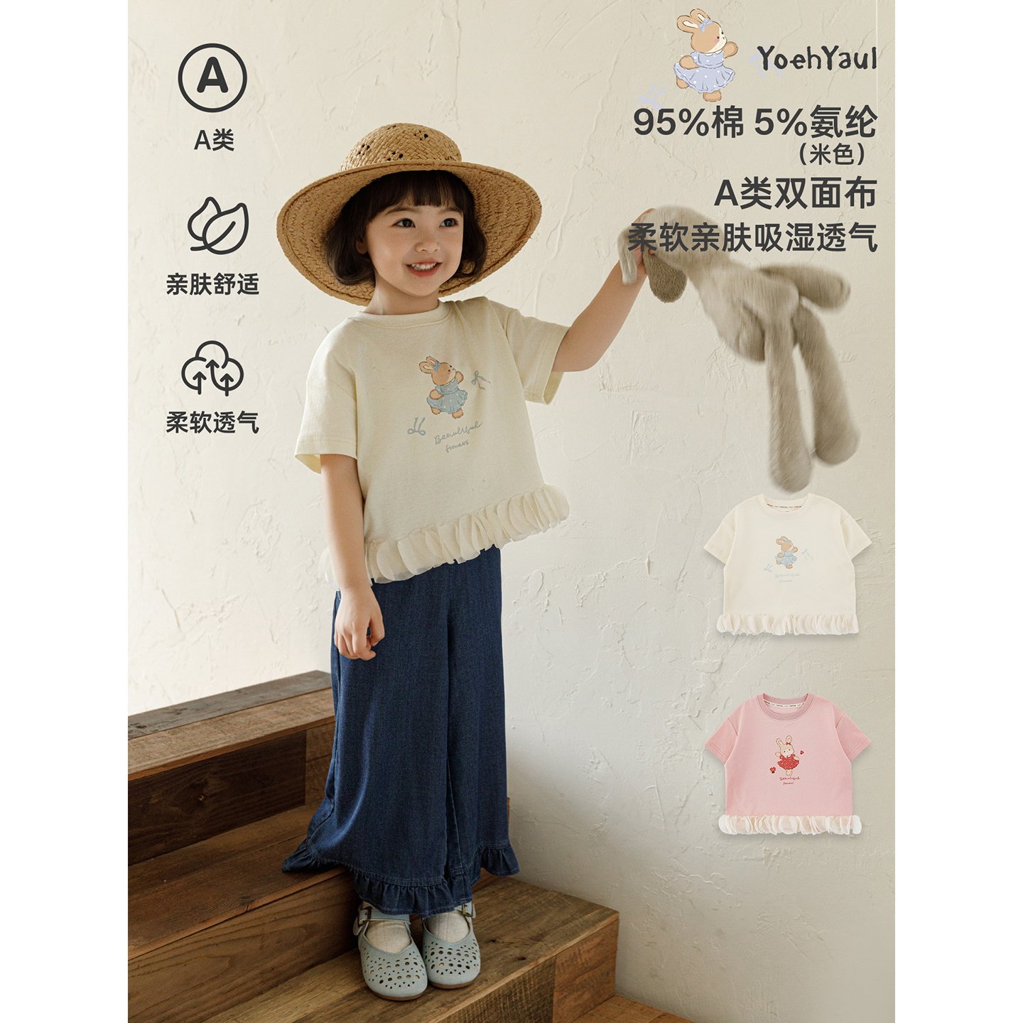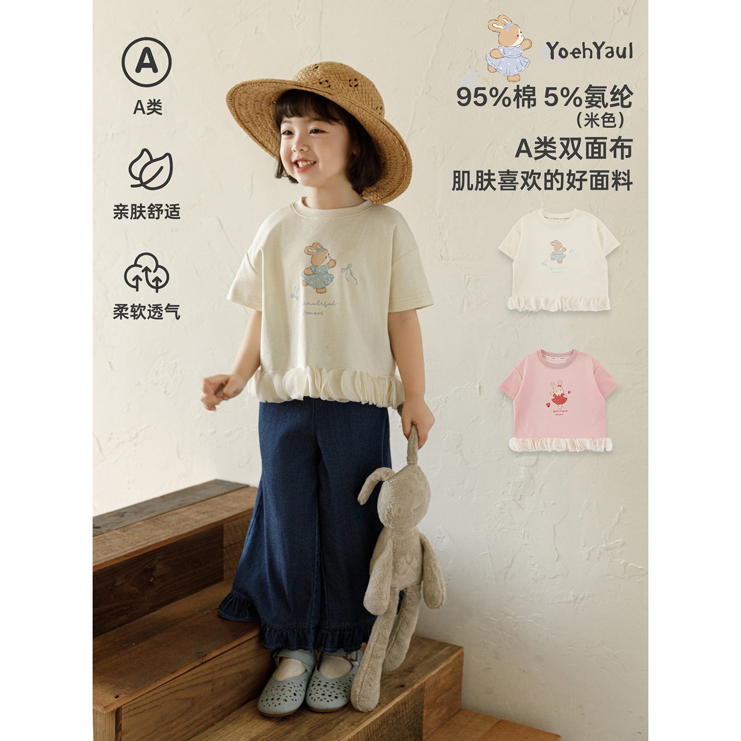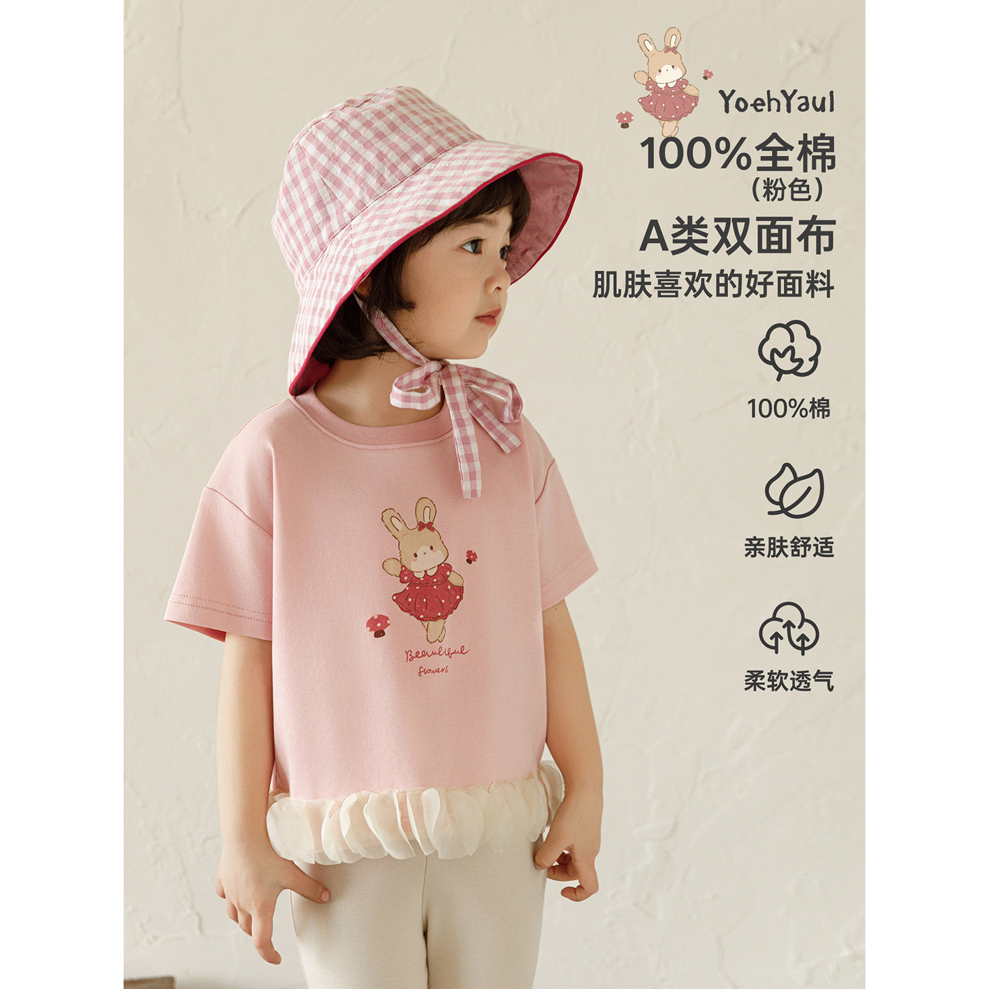 幼悠女童2026夏季新款卡通小兔短袖圆领T恤宽松短款儿童清凉上衣