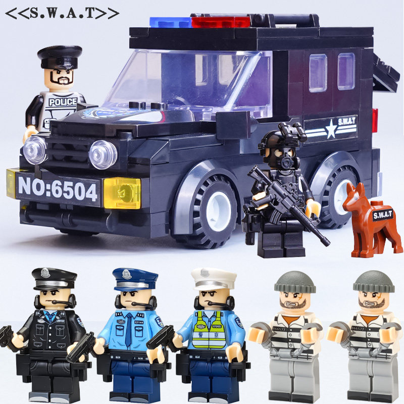 现代军事积木警察特种兵人仔武器模型男孩拼装特警士兵玩具小人偶