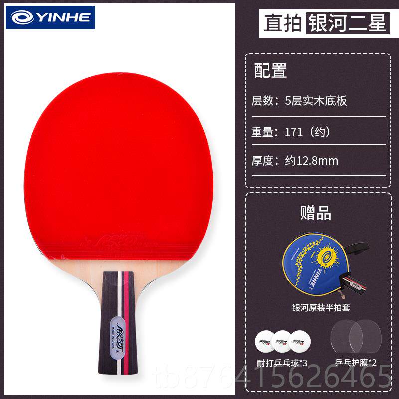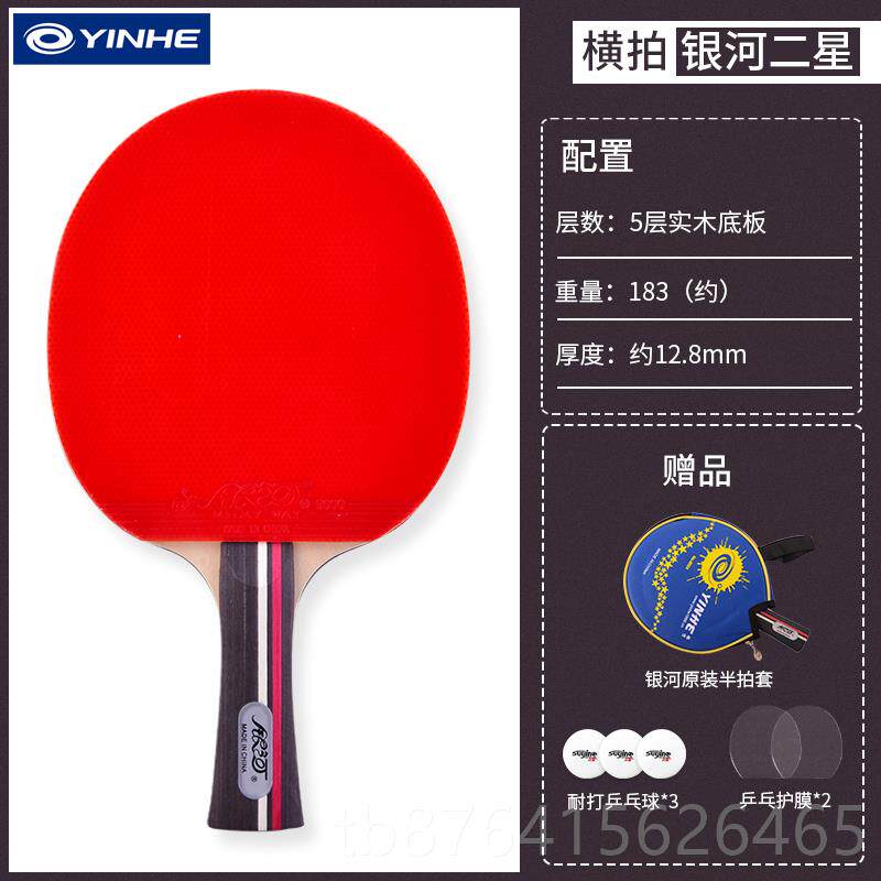 正品银河乓拍球正乒品小学生专用球拍四乒乓球拍横拍直拍单星只初