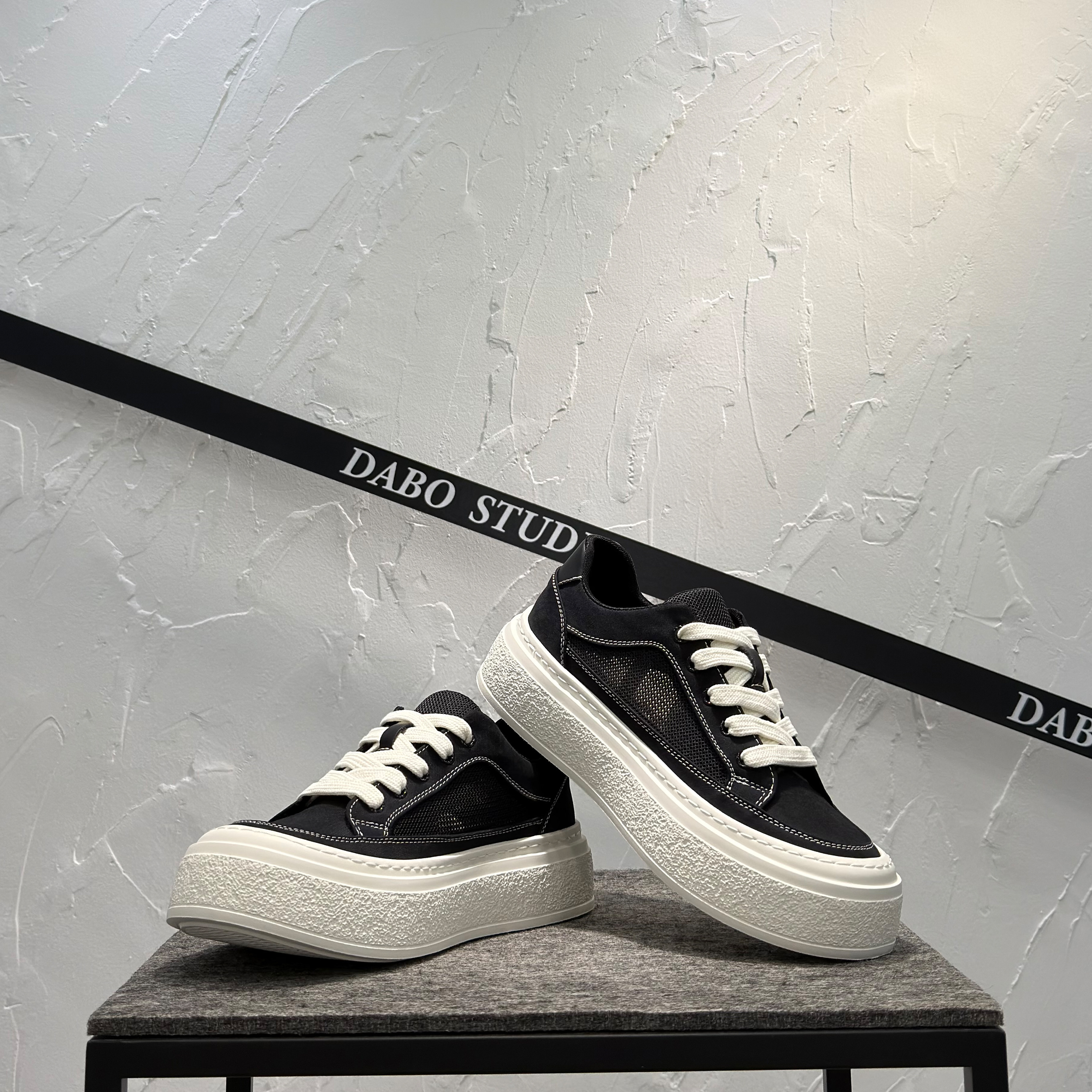 男鞋夏透气2026新款网面休闲鞋百搭潮厚底增高鞋低帮系带轻便板鞋