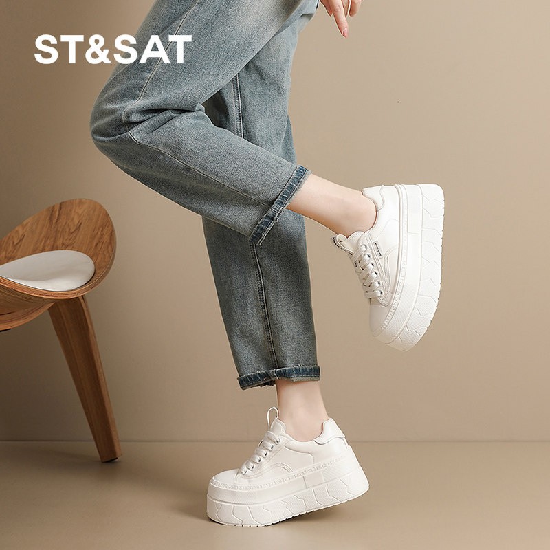 星期六厚底小白鞋女鞋春季新款百搭增高休闲板鞋女士小个子运动鞋