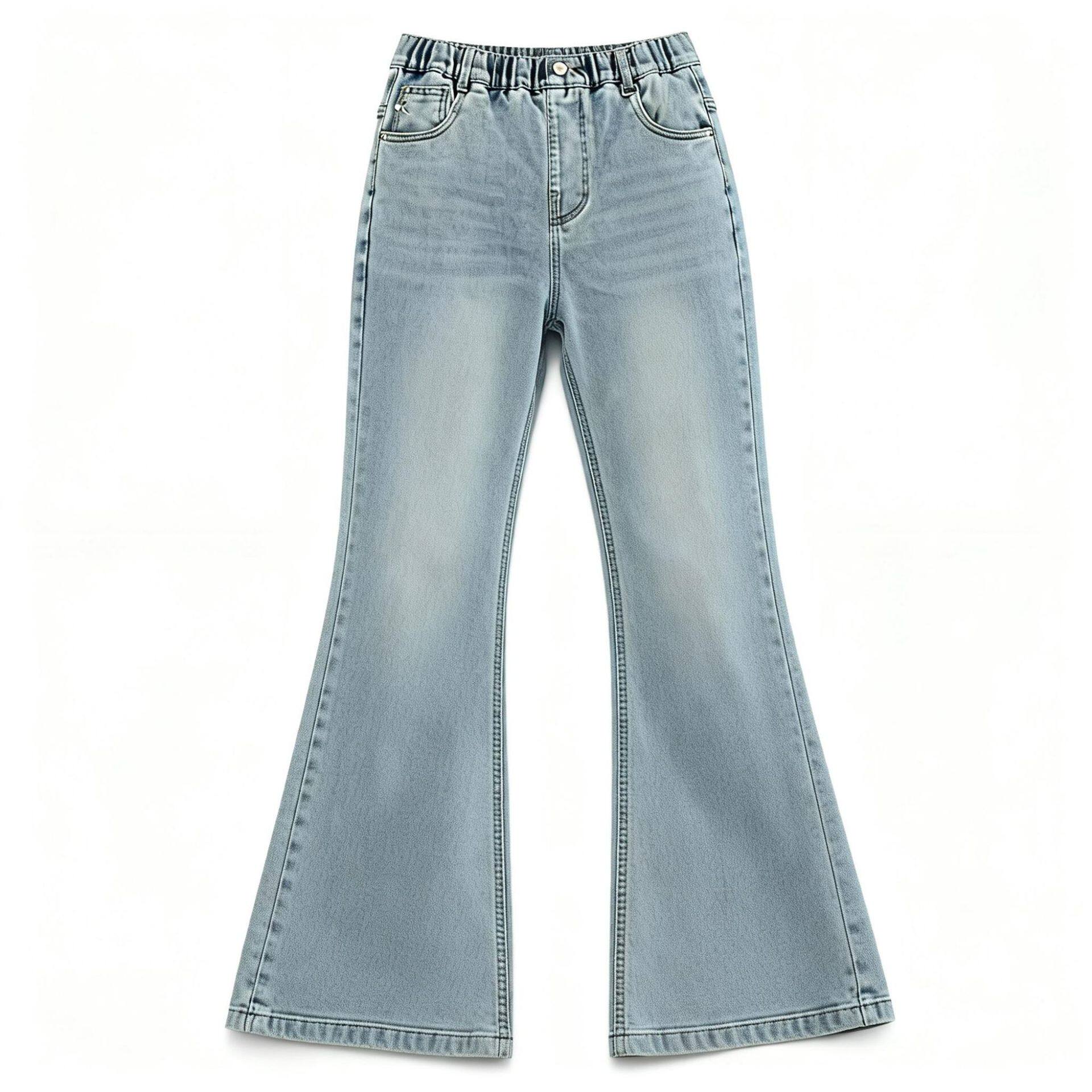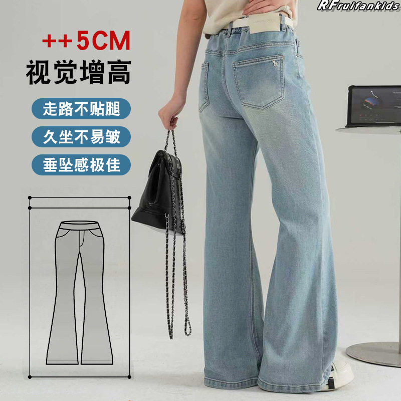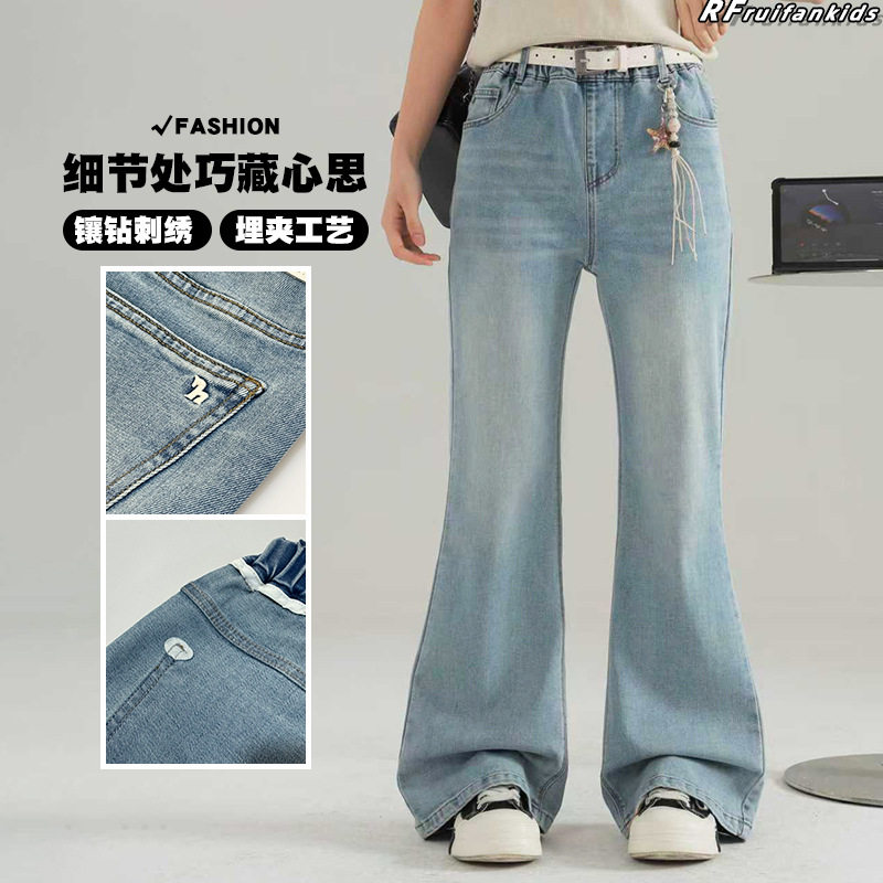 女大童牛仔裤春秋季2026新款初中生宽松长裤女孩微喇潮流春装裤子