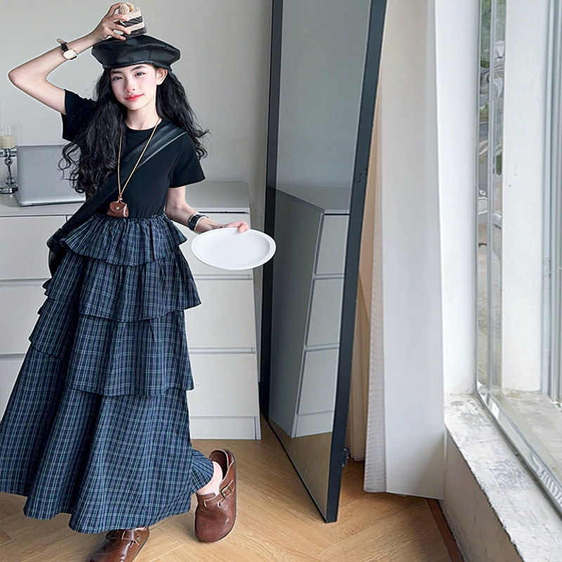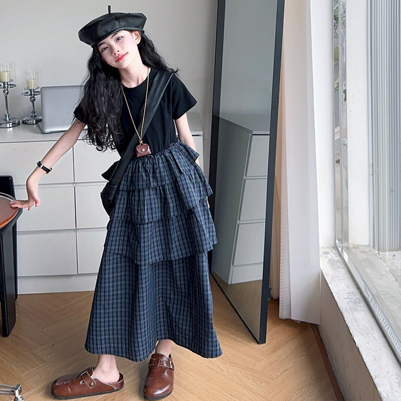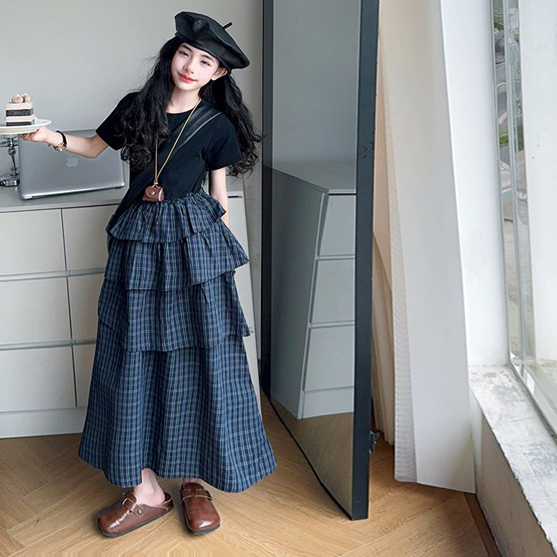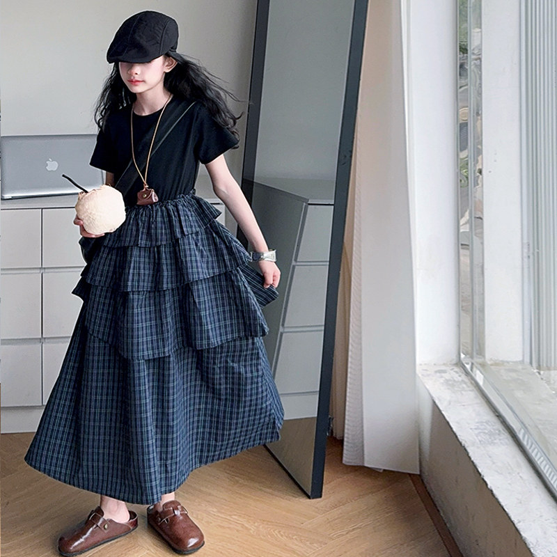 女童格子连衣裙夏季薄款2025新款大童蛋糕裙高级感亲子装长款裙子