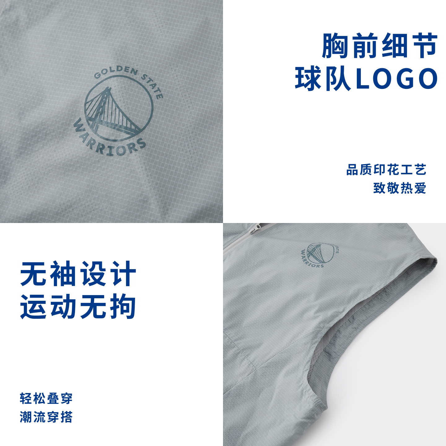 NBA官方湖人勇士篮球春季男女同款运动健身简约马甲短袖T