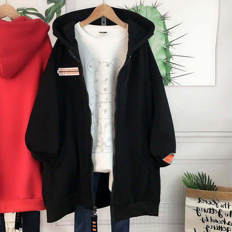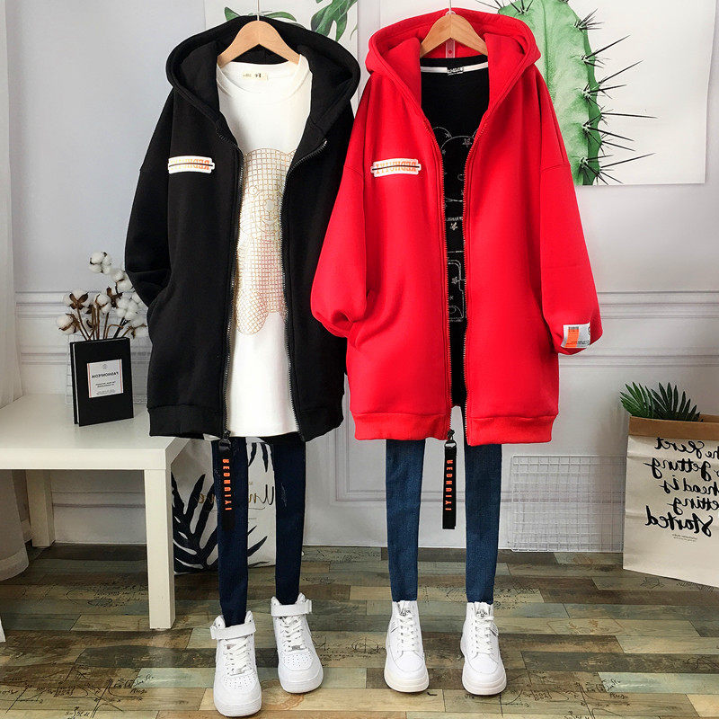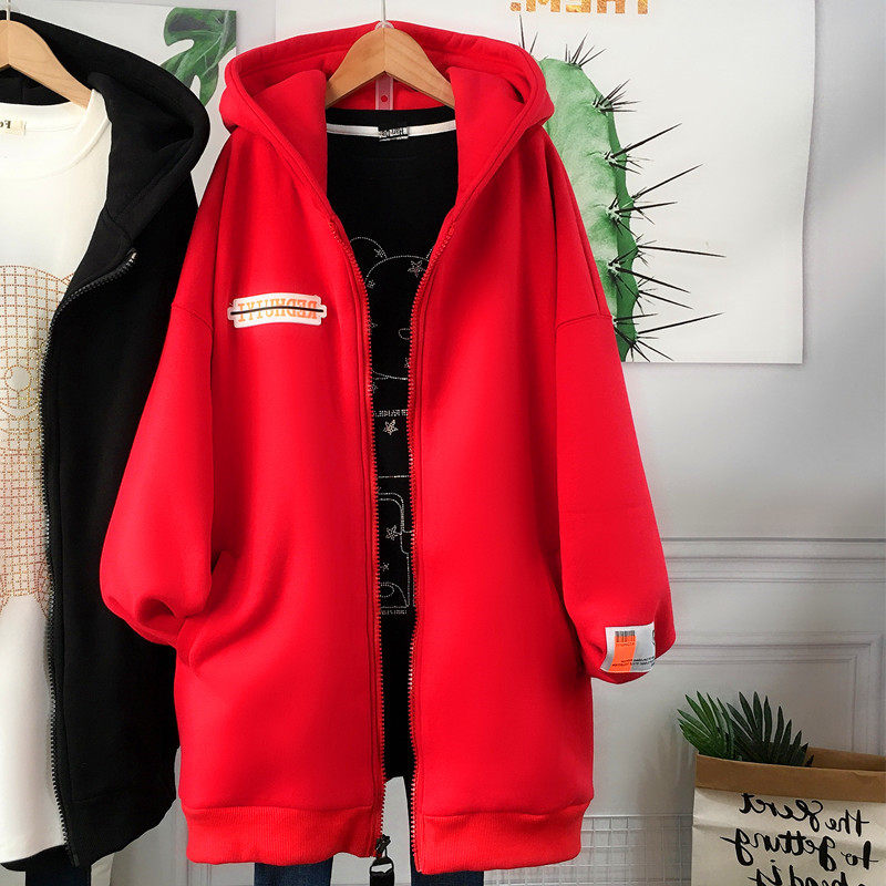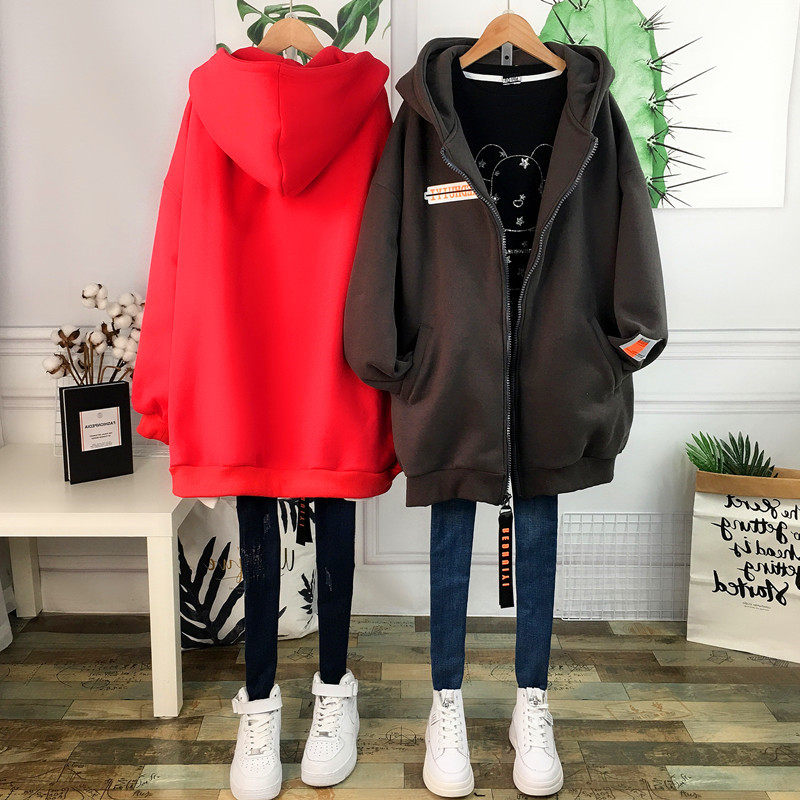 秋冬特大码300斤胖MM宽松加绒加厚连帽中长款开衫拉链卫衣外套女