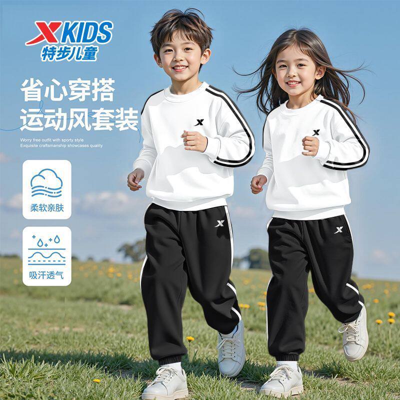 特步儿童运动套装男童中大童2026新款春季卫衣运动服男孩学生男生