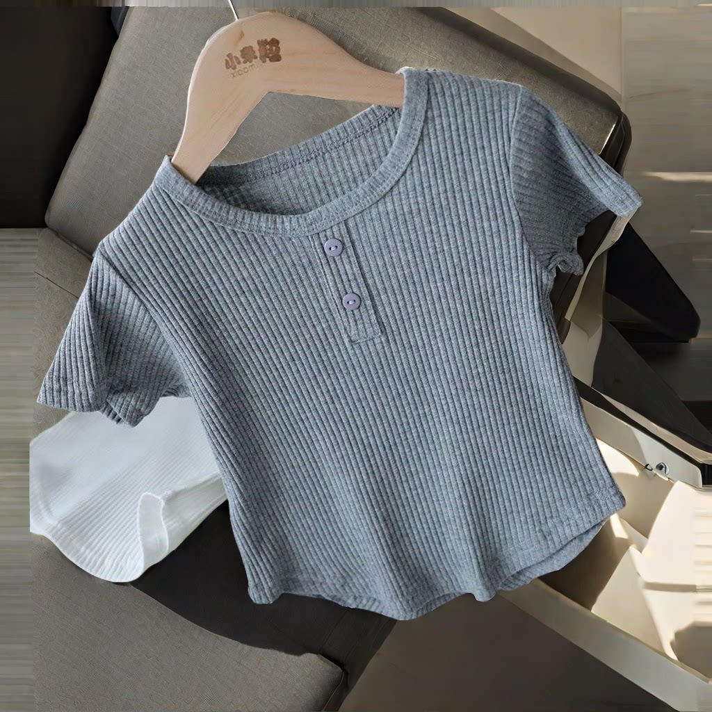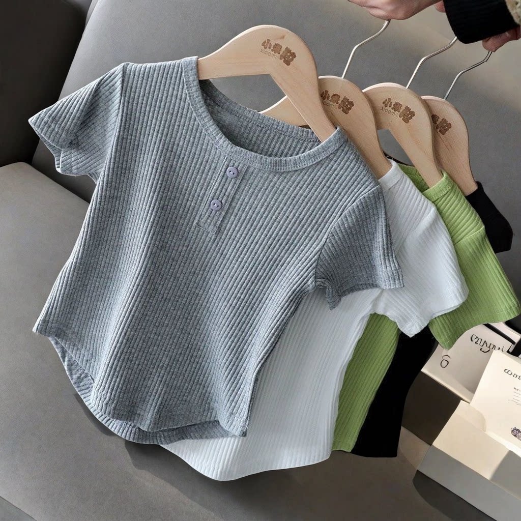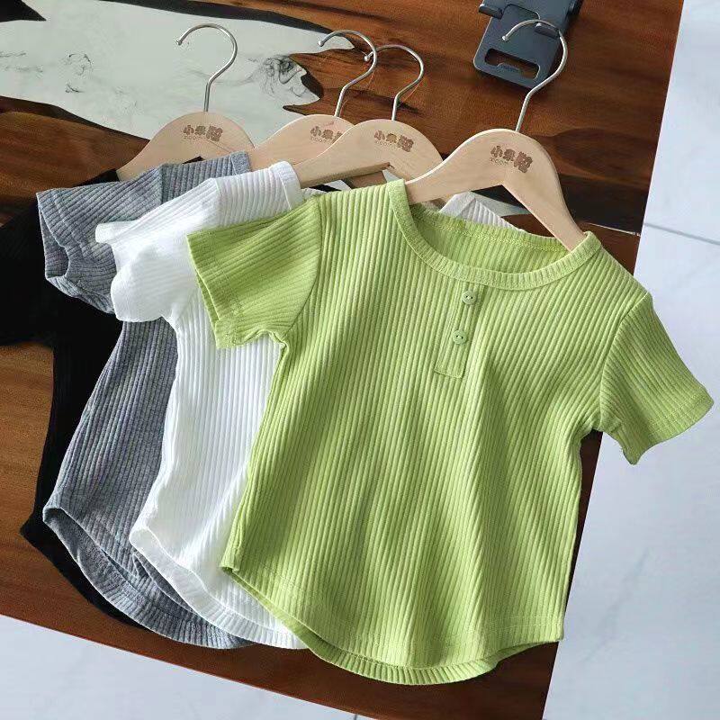 女童短袖T恤夏装新款小孩儿童宝宝纯色洋气百搭高腰修身短款上衣