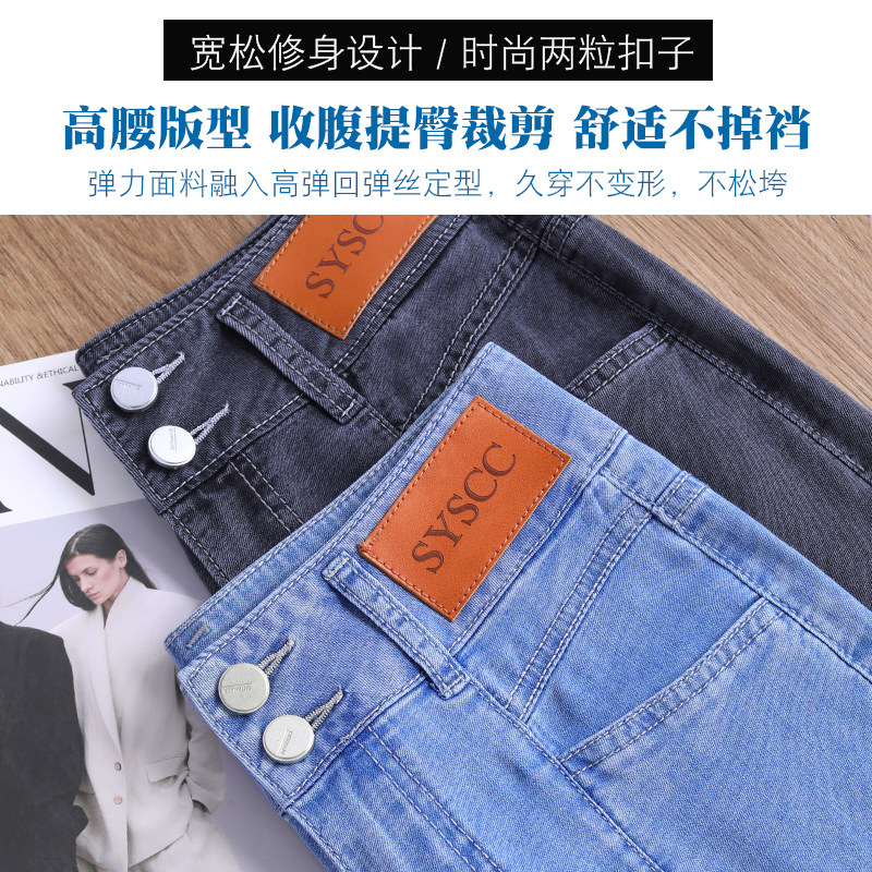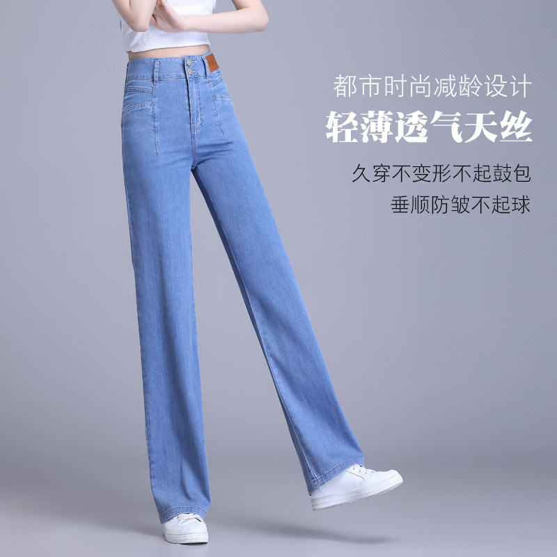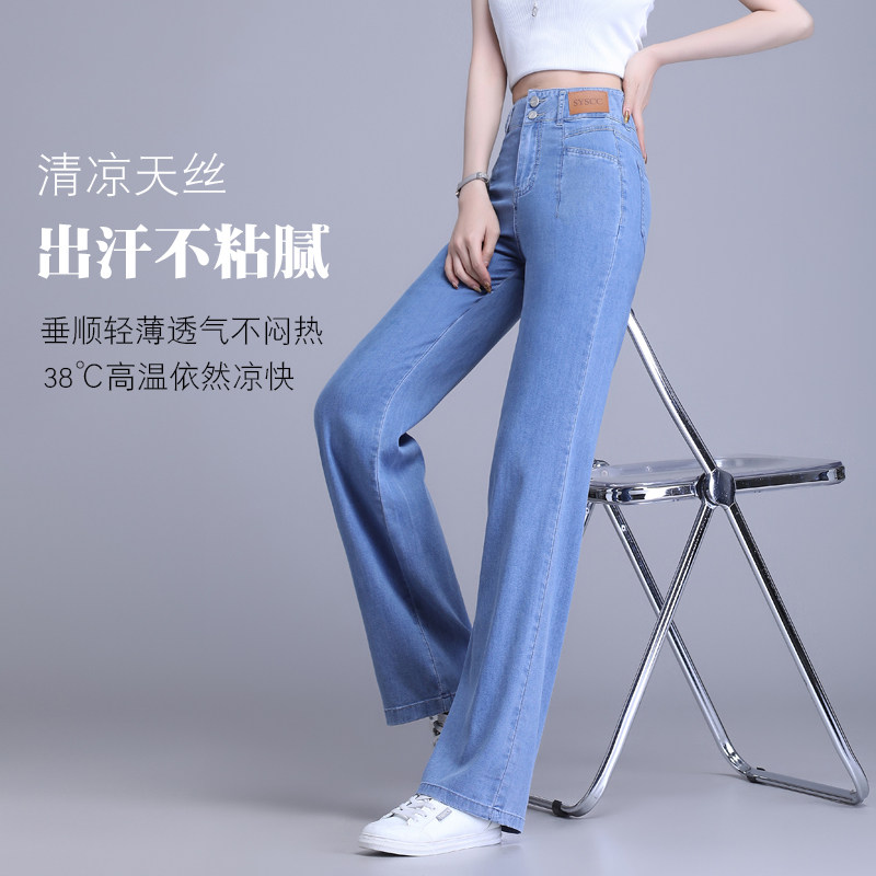 直筒牛仔裤女夏季薄款天丝裤2026年新款弹力冰丝裤宽松高腰阔腿裤