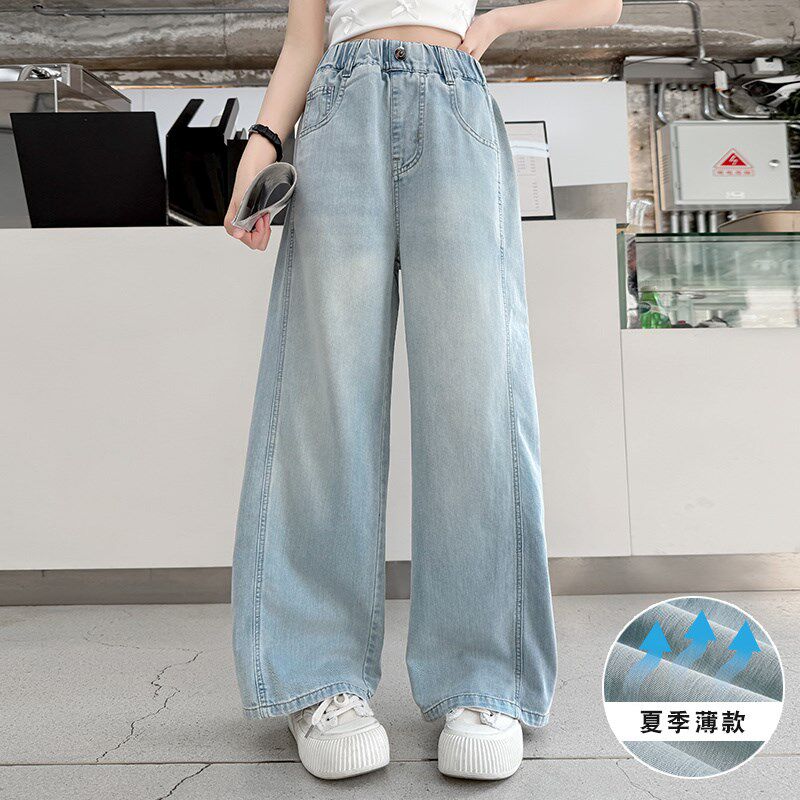 女童阔腿牛仔裤2025夏季新款儿童薄款春夏装大童直筒冰丝裤子宽松