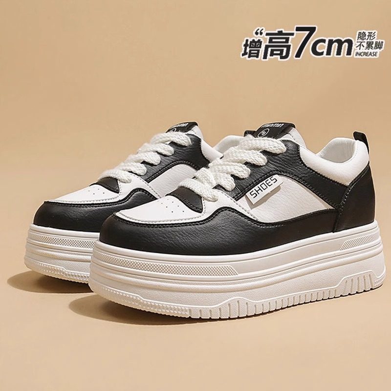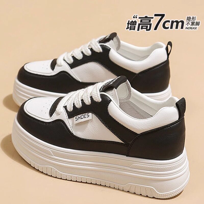 真皮小白鞋女增高7CM小个子2026春季新款百搭厚底板鞋休闲运动鞋