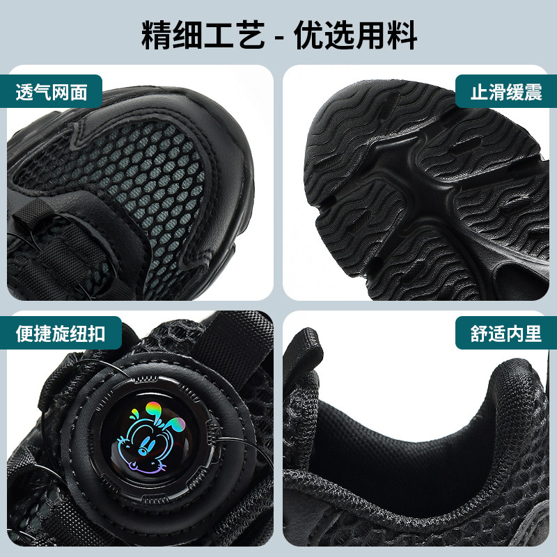 巴布豆童鞋男童鞋子黑色运动鞋夏季新款儿童单网鞋女童夏季小白鞋