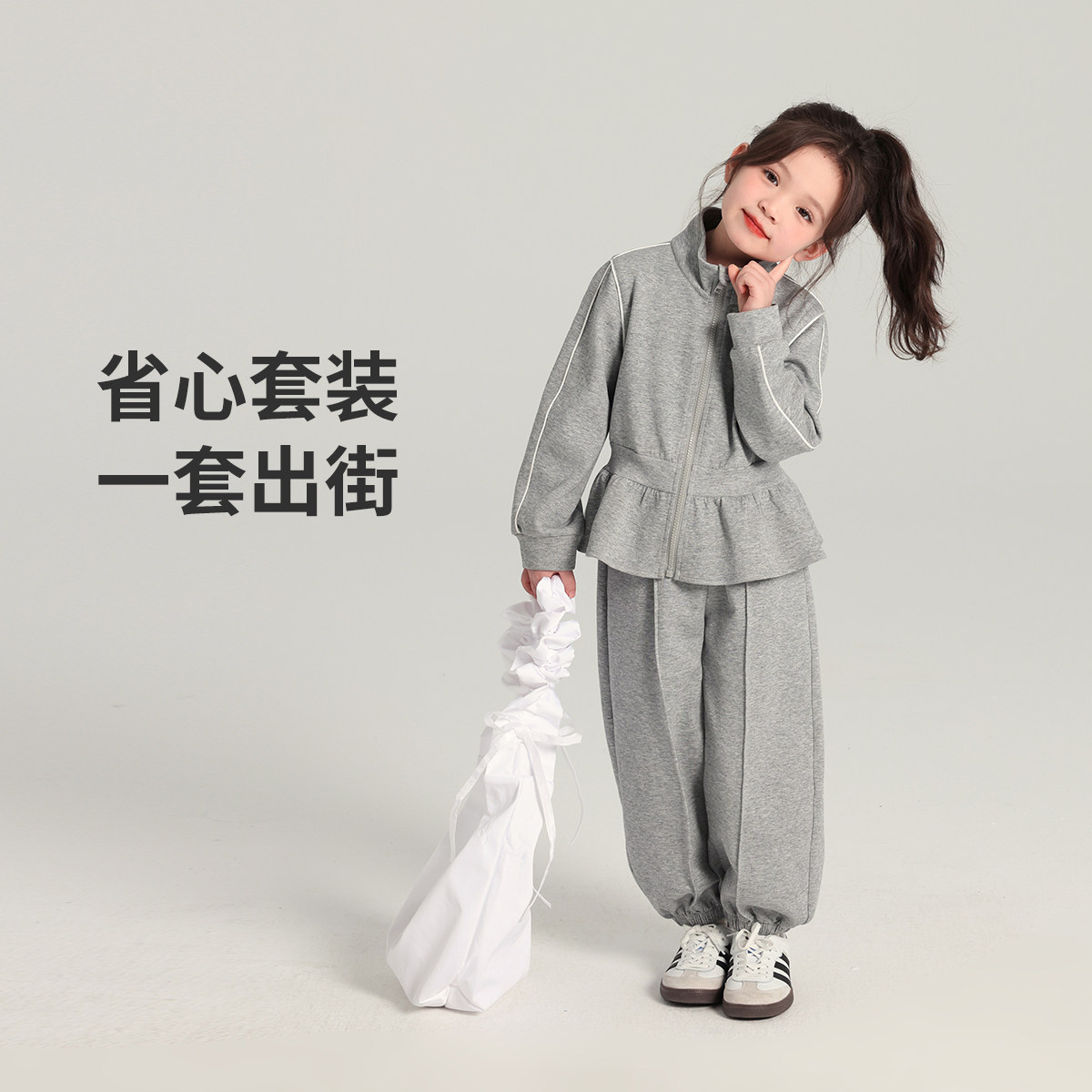 布丁哈鲁童装春装女童2026春季新款儿童针织上衣百搭长裤套装