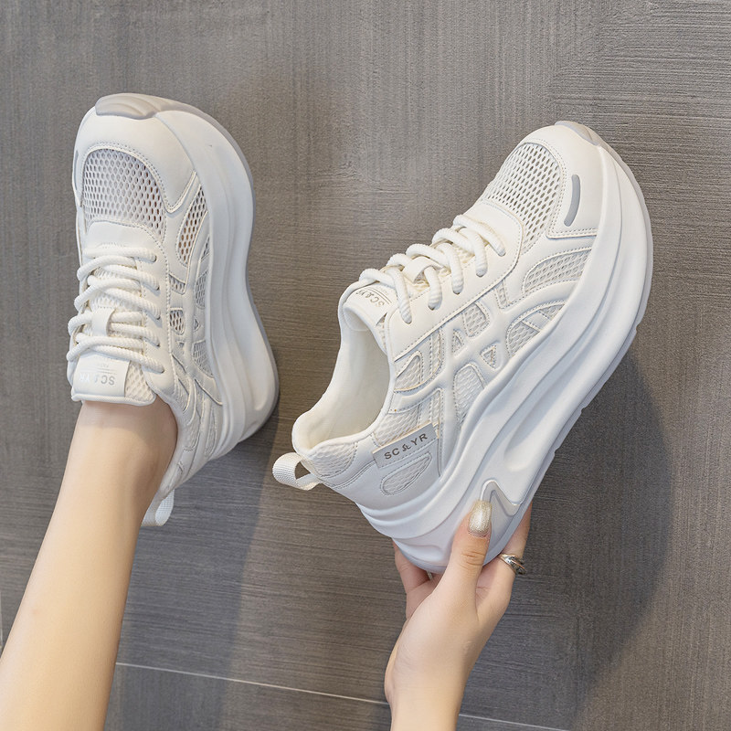 真皮网面老爹鞋女2026新款春夏季透气百搭轻便增高厚底休闲运动鞋