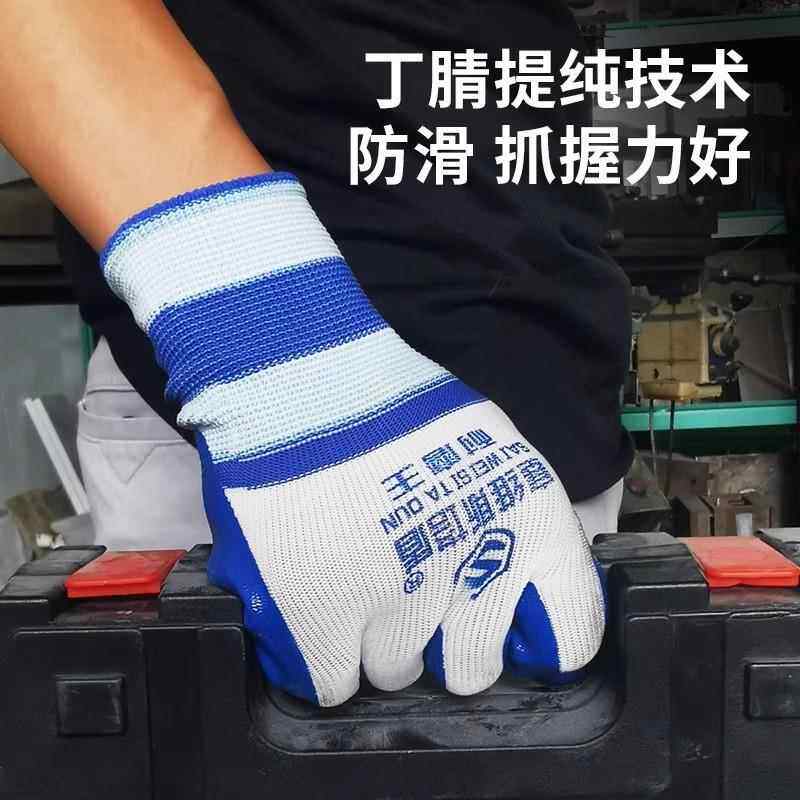 劳保手套耐磨工作加厚不烂工地干活防滑防水耐油男女橡胶进口丁腈