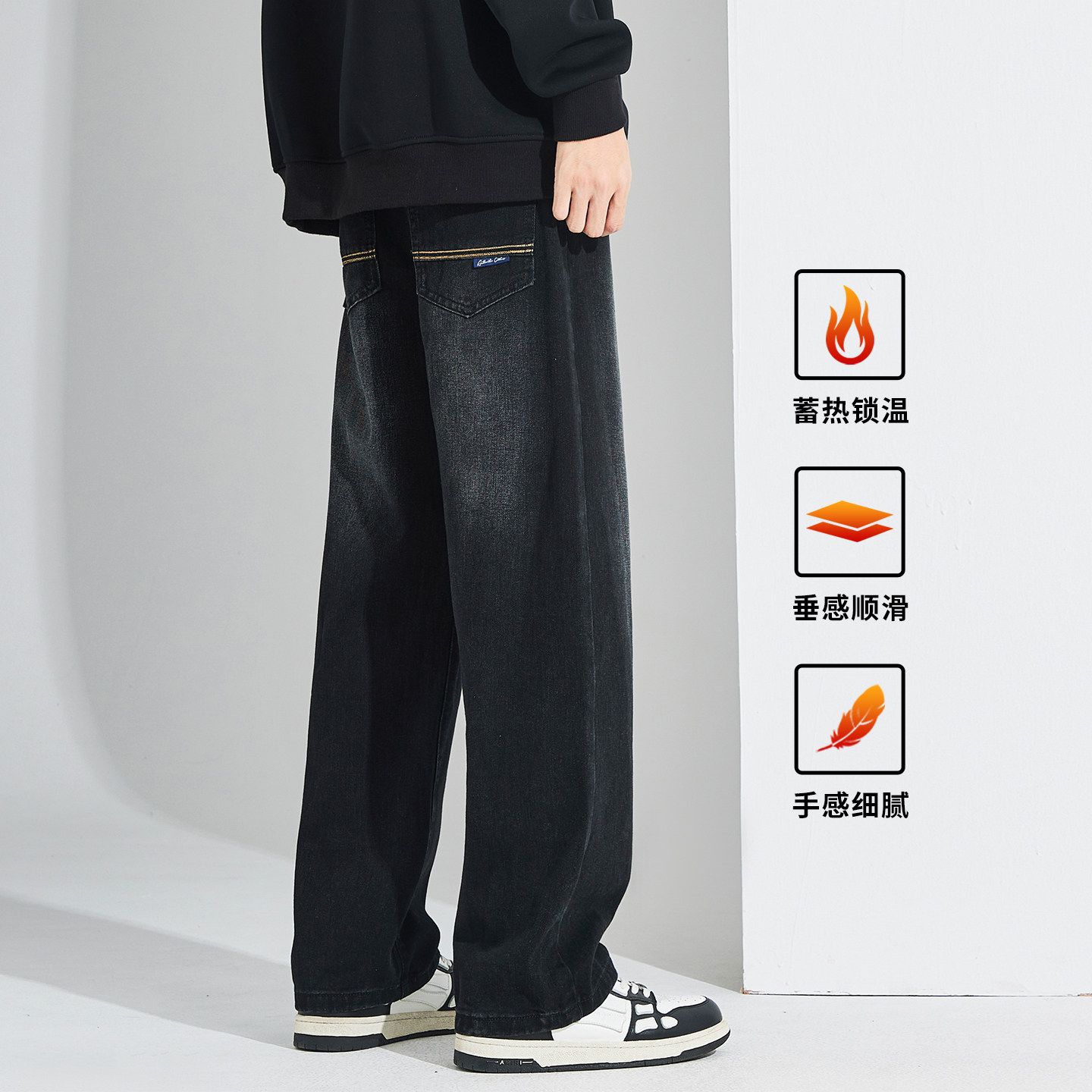 青少年加长牛仔裤子男款秋冬加绒宽松美式休闲直筒显瘦加厚阔腿裤