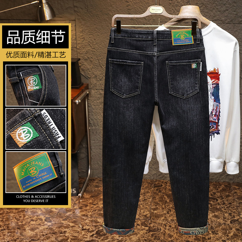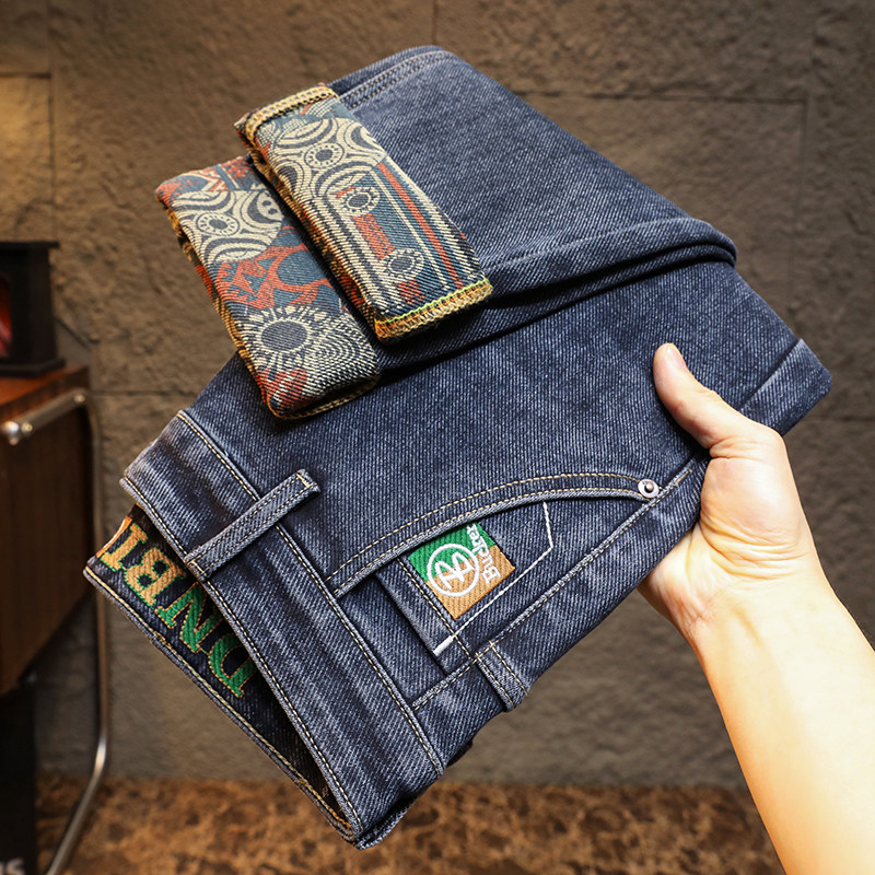 2026春季新款潮牌百搭牛仔裤男士轻奢印花弹力修身小直筒男款裤子