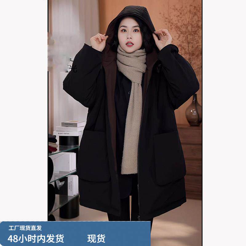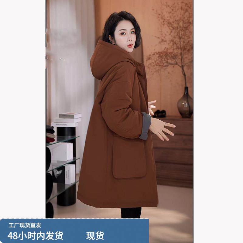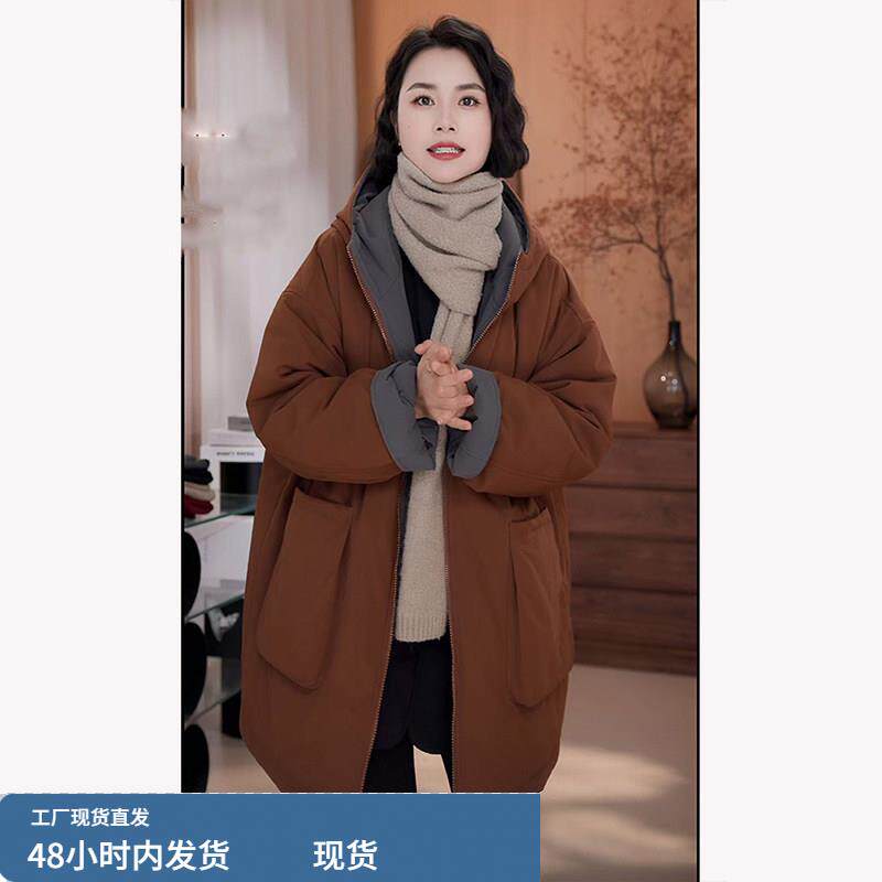 高级感正反两穿连帽羽绒棉服女款冬季宽松百搭中长款棉衣夹棉外套