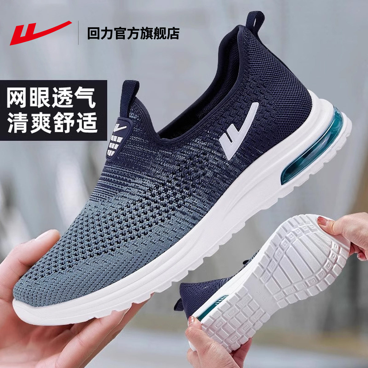 回力官方旗舰店一脚蹬男鞋夏季网面透气鞋子爸爸鞋老北京布鞋男款