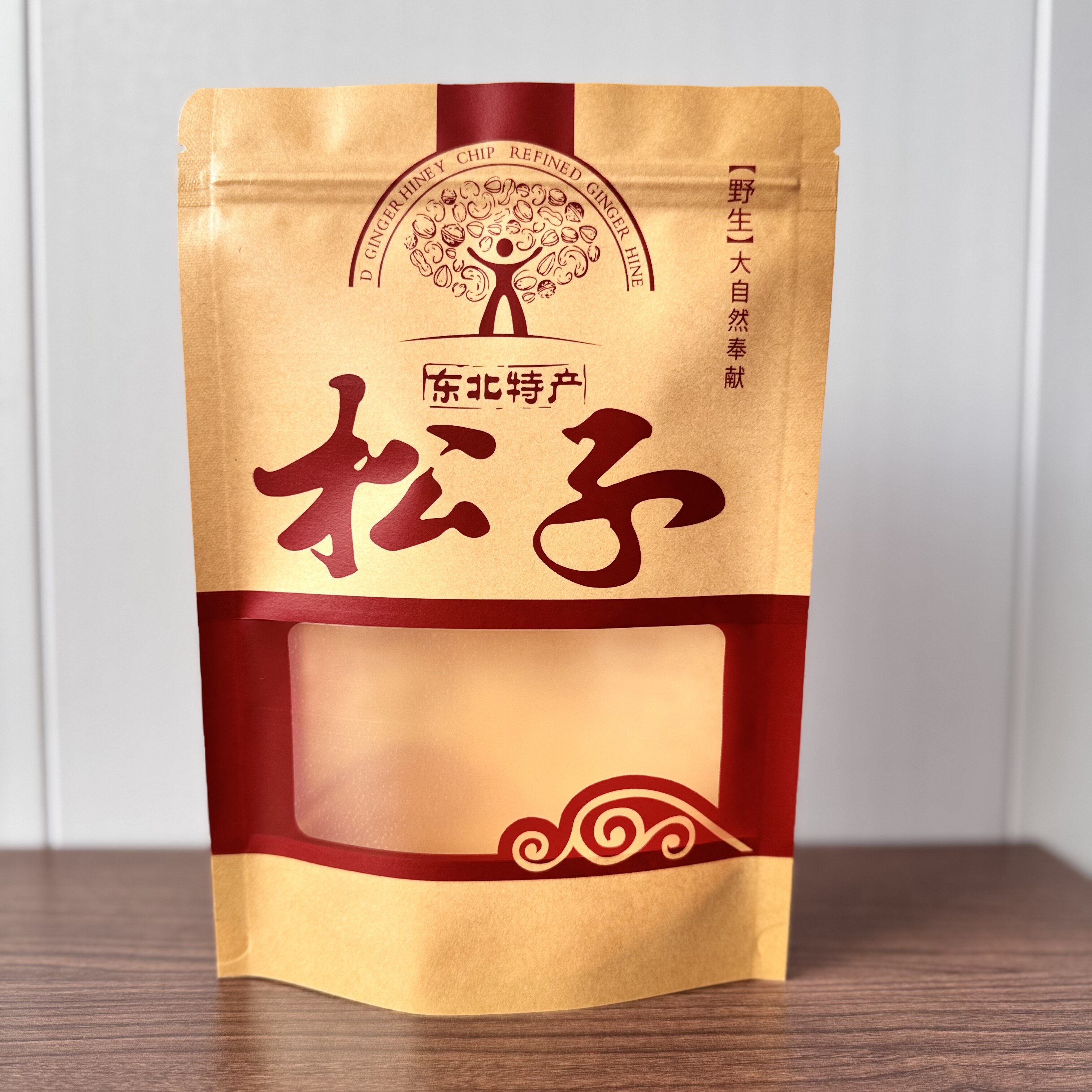 东北野生榛子礼品袋松子坚果自封自立包装袋 500克牛皮纸袋 包邮