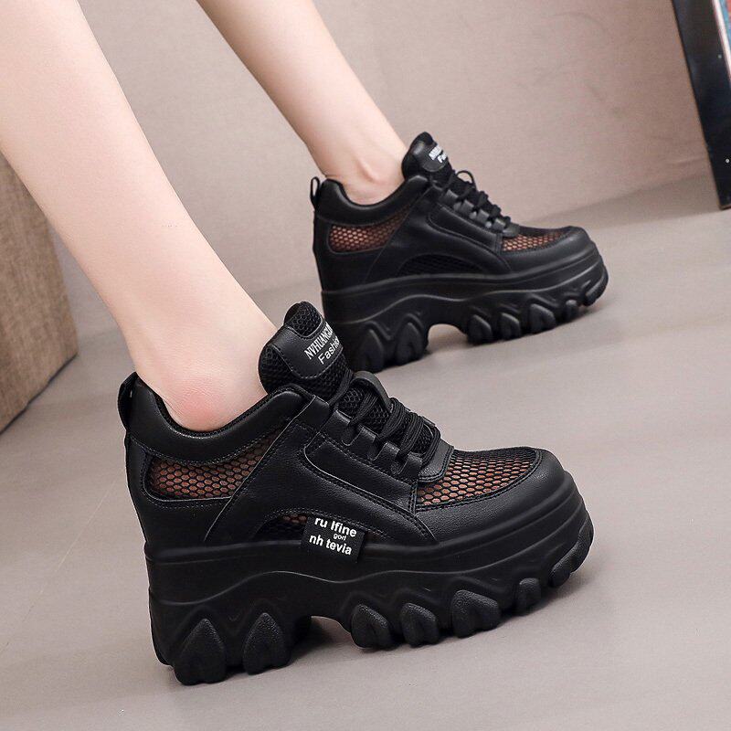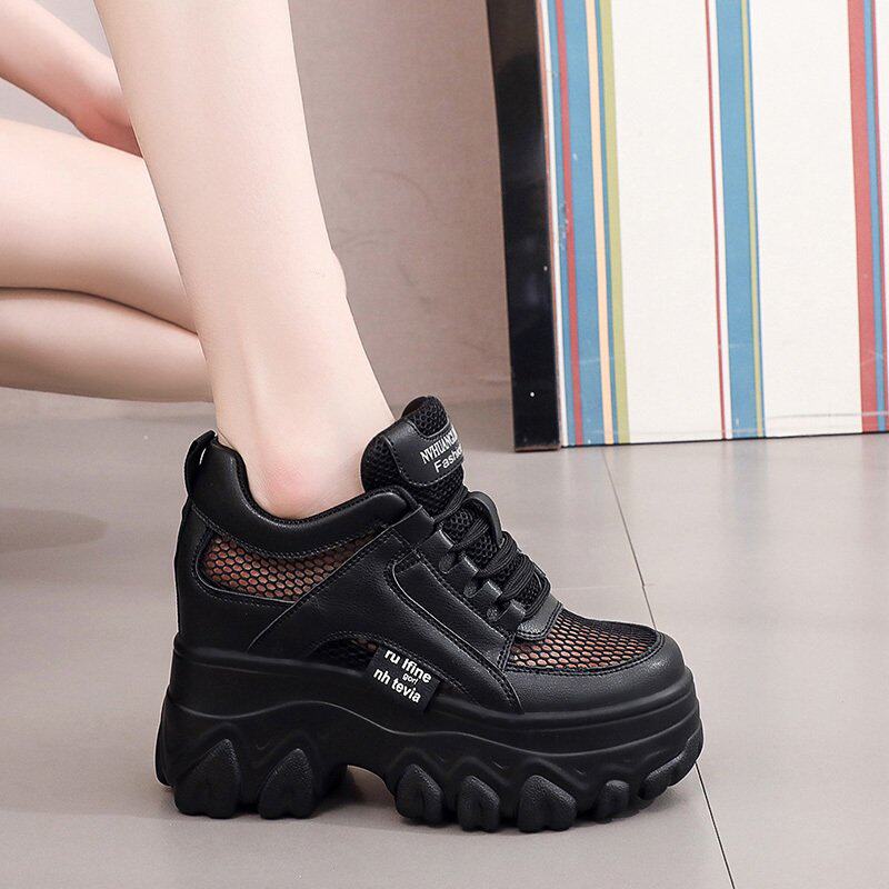 内增高女鞋10厘米夏季新款2025爆款百搭白色厚底坡跟网面老爹鞋