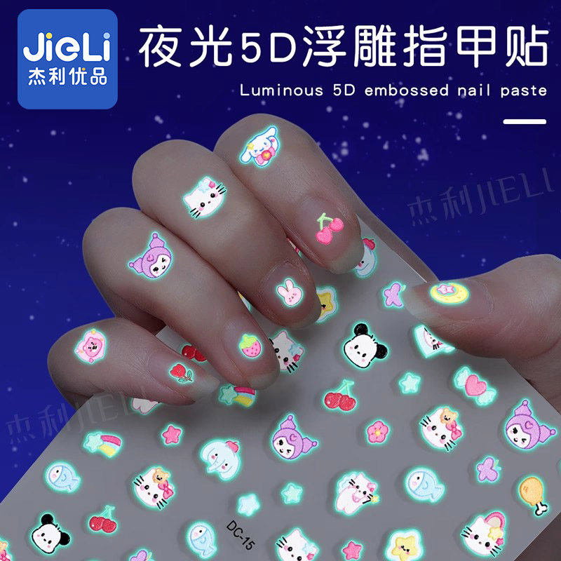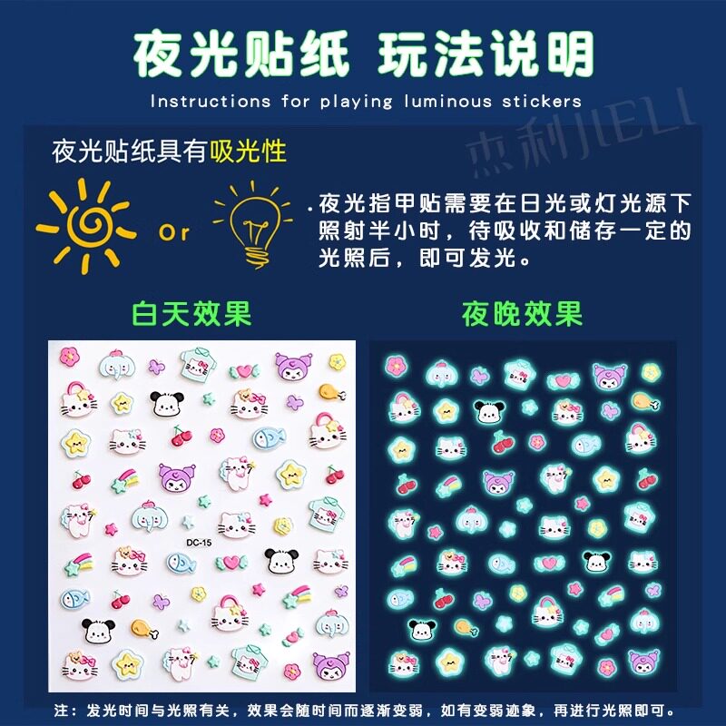 小女孩卡通夜光指甲贴儿童荧光美甲小图案贴画无毒无味小鼻嘎贴纸