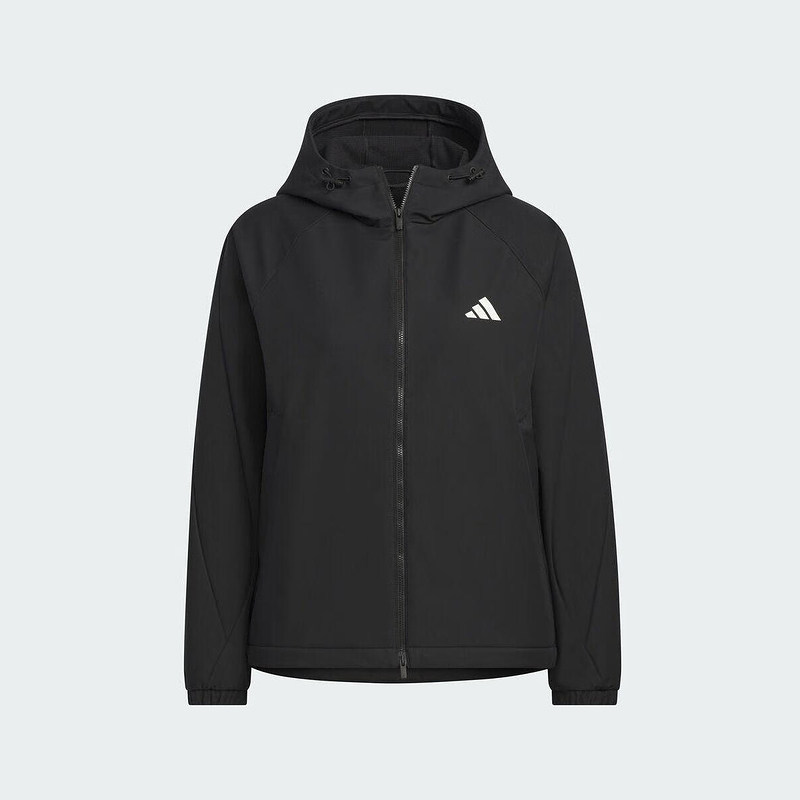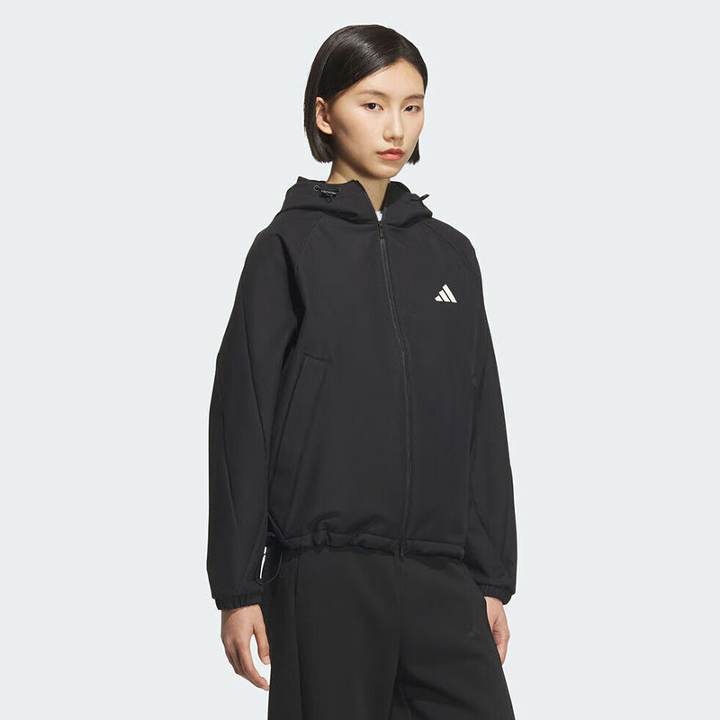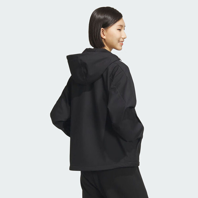 adidas阿迪达斯黑色连帽户外训练服外套2025冬女梭织夹克KC0054