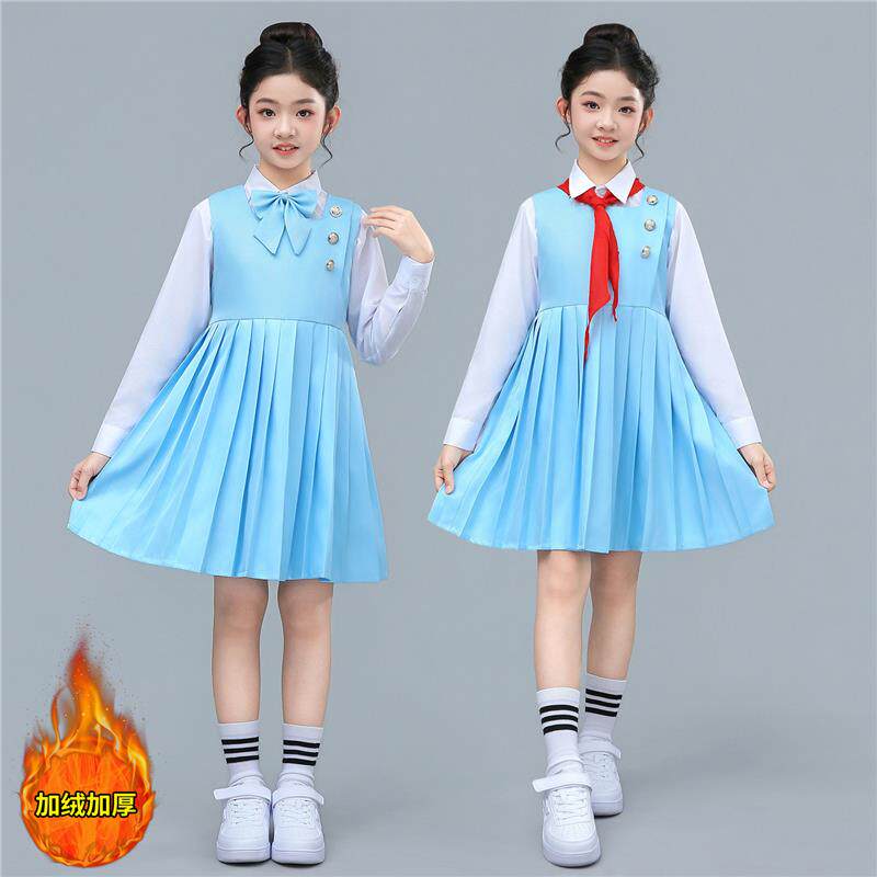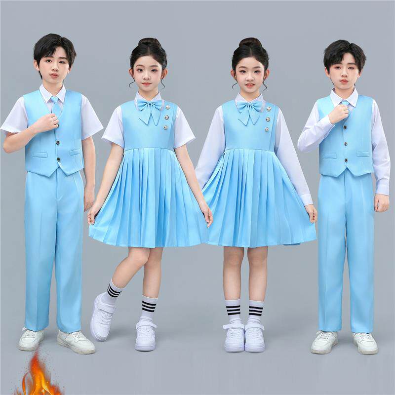儿童合唱演出服男女童蓝色学院风中小学生演讲比赛礼服装诗歌朗诵
