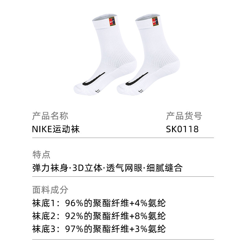 Nike耐克网球袜男女专业运动中长筒加厚毛巾底袜子防滑吸汗SK0118