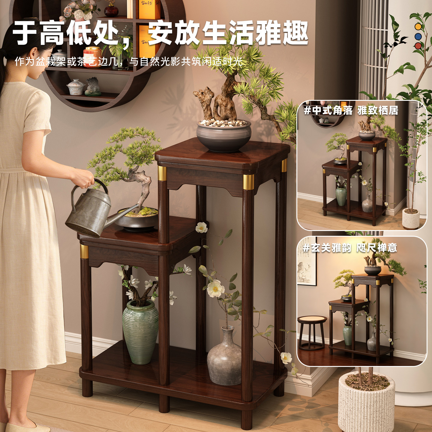 中式花架子客厅落地式阳台置物架多层阶梯式摆放架实木宋徽宗花架