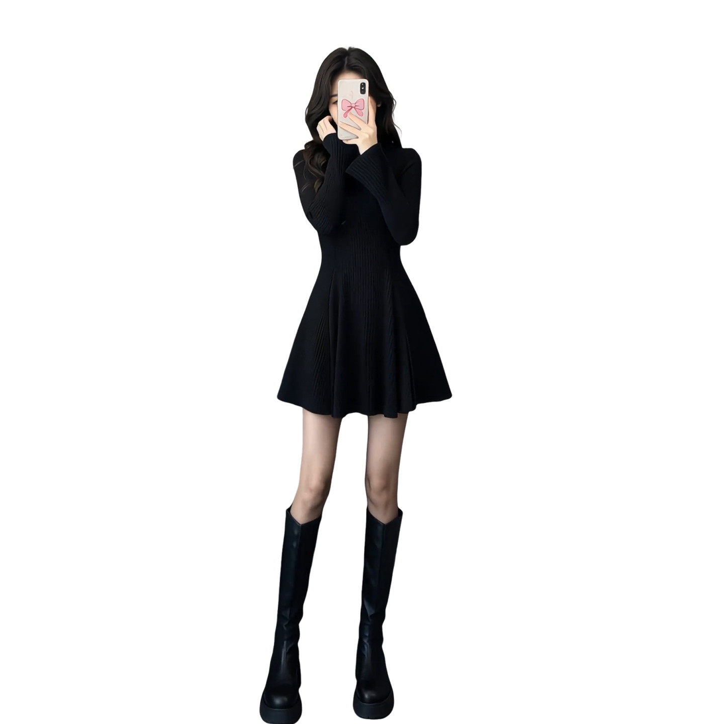 早春小个子法式黑色针织连衣裙子女春季穿搭2026年新款收腰小黑裙