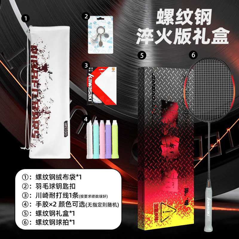 川崎螺纹钢淬火礼盒羽毛球拍男女碳纤维进攻型单拍4U超轻正品新款