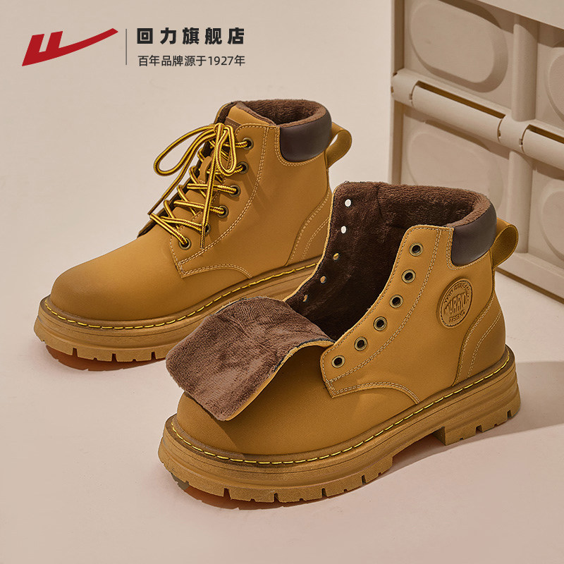 回力大黄靴男款2025新款秋冬户外工装靴子登山男鞋厚底加绒马丁靴