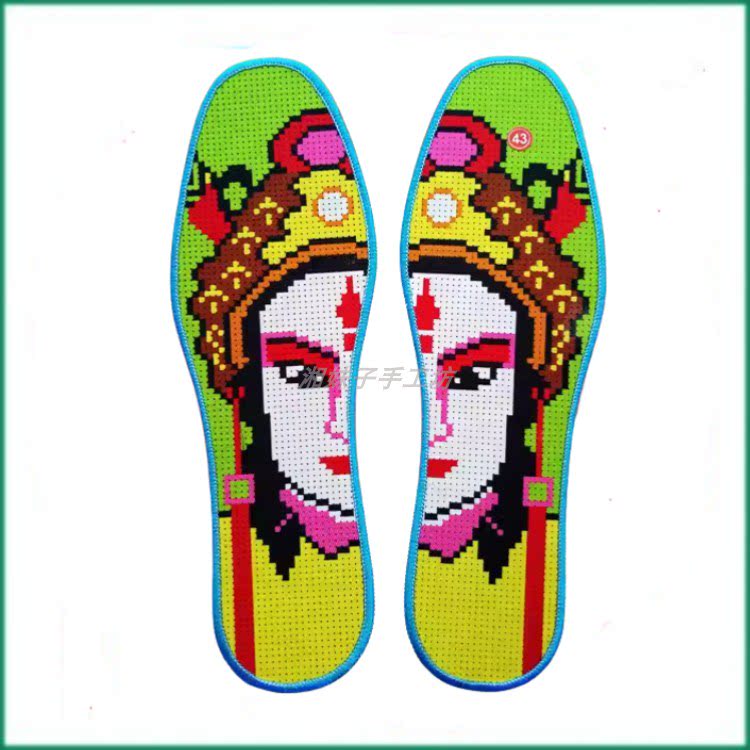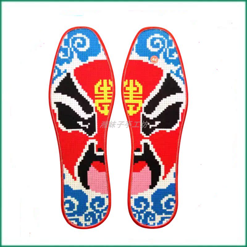 纯棉布手工男士简单黄色包边红色脸谱棉布新款鞋垫包邮十字绣