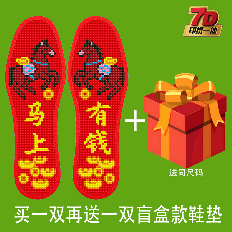 新款本命年红色马上有钱马到成功十字绣鞋垫自己绣半成品带针线