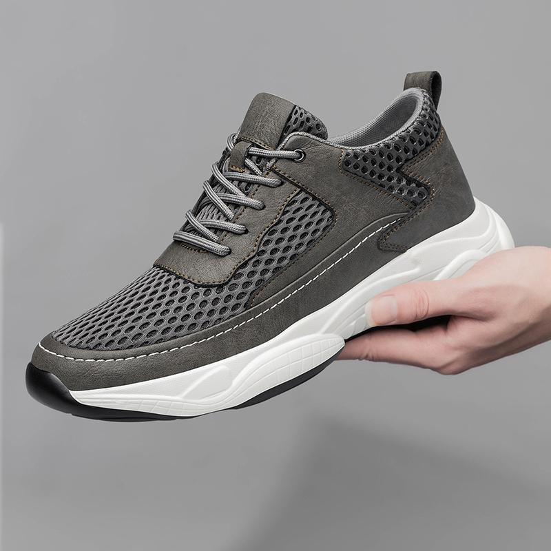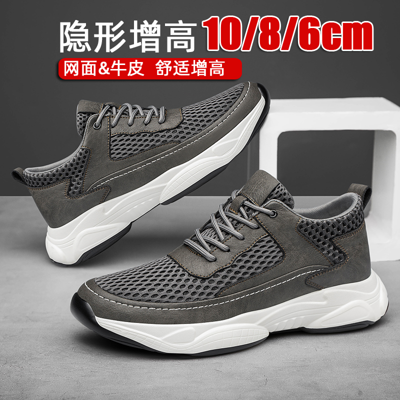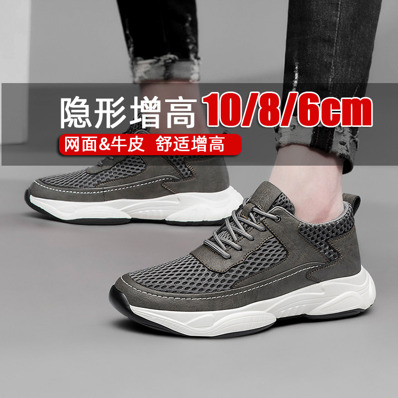 网面增高鞋男2025夏8CM透气休闲运动真皮鞋10cm隐形内增高男鞋潮