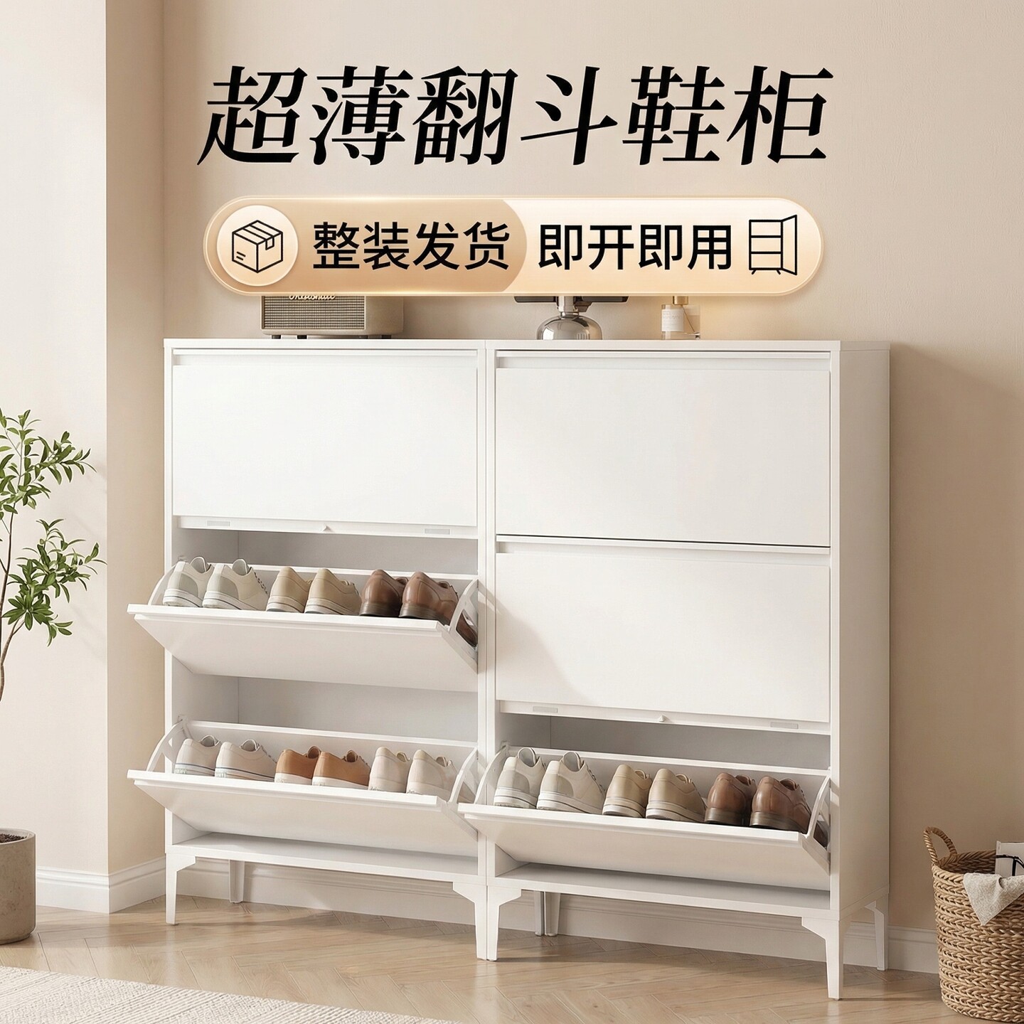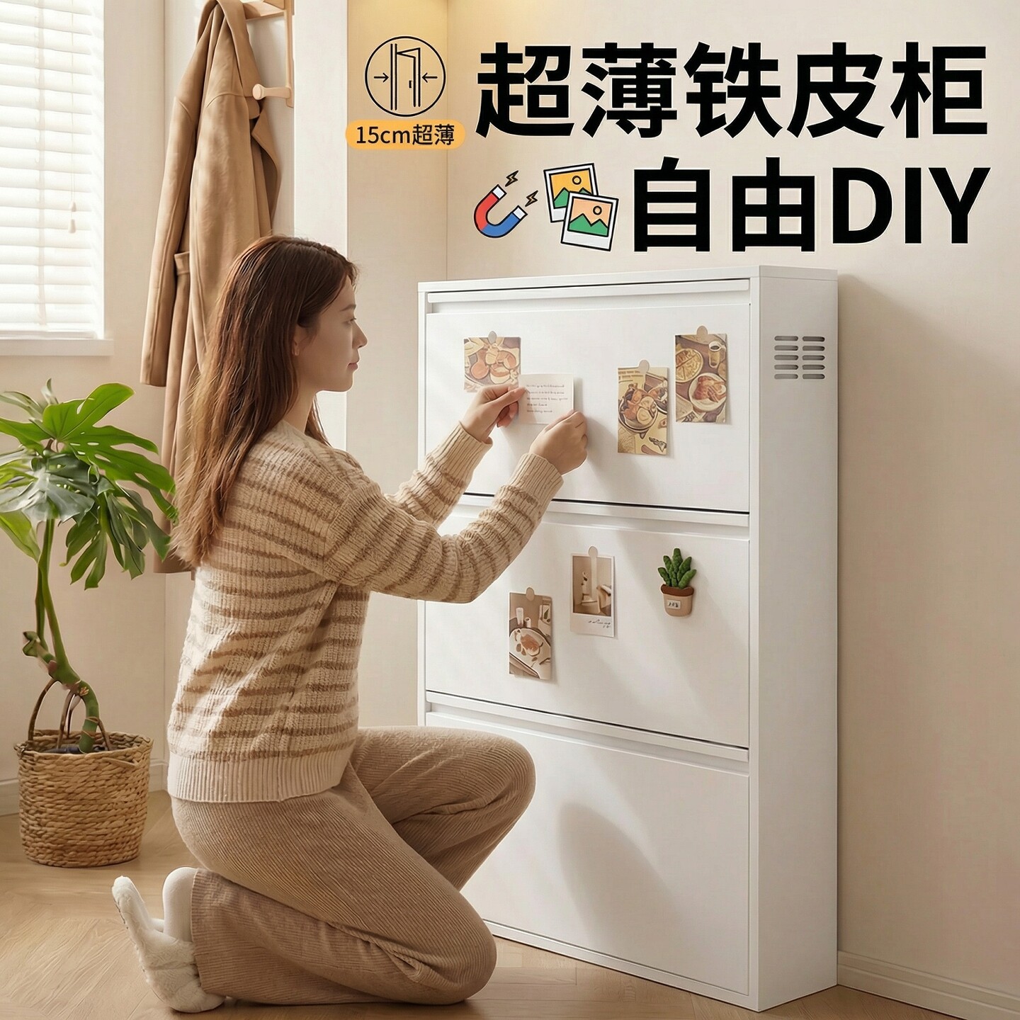 超薄入户鞋柜家用窄边小型一体翻斗式门后收纳柜铁皮柜透气铁艺柜