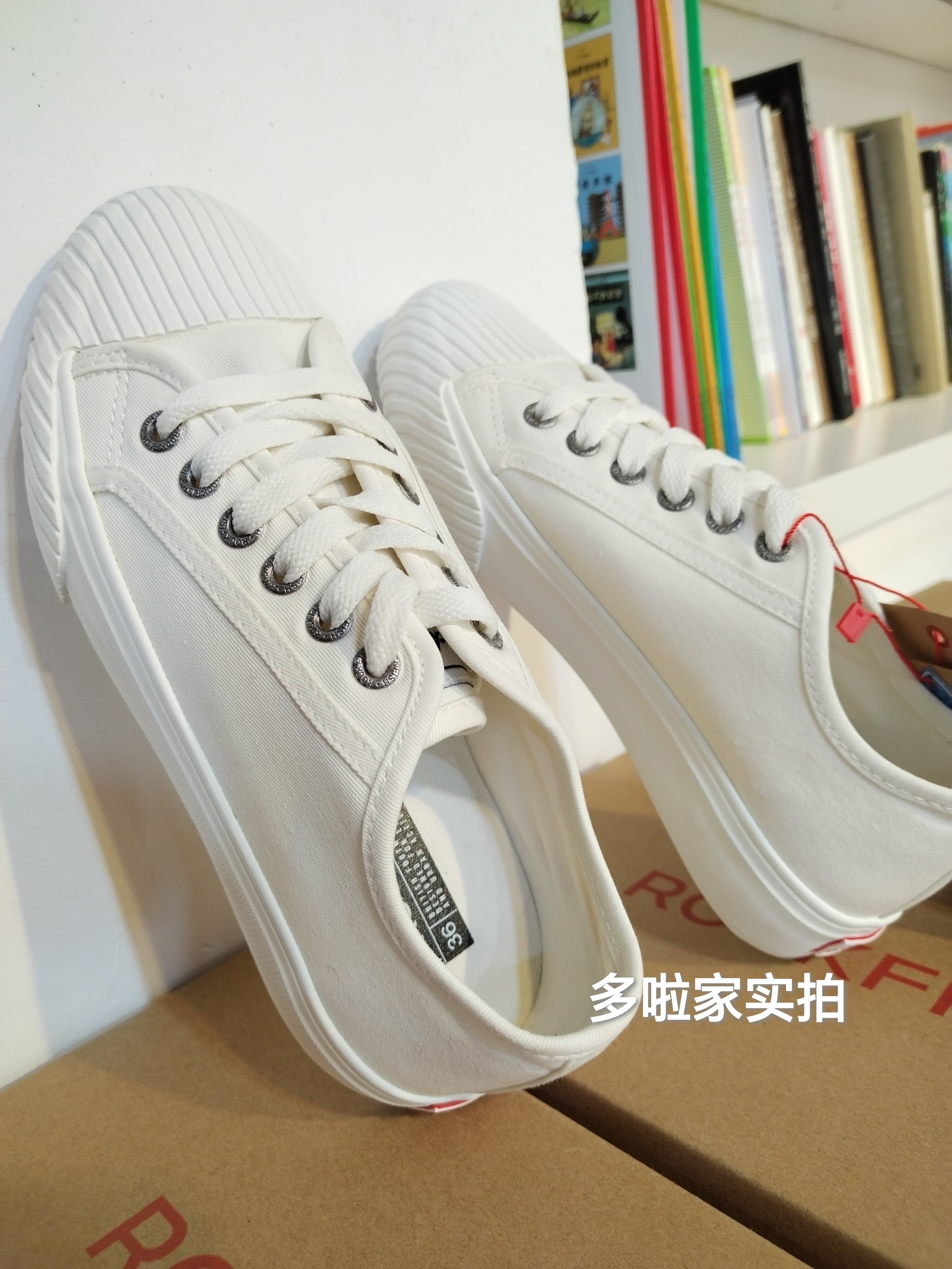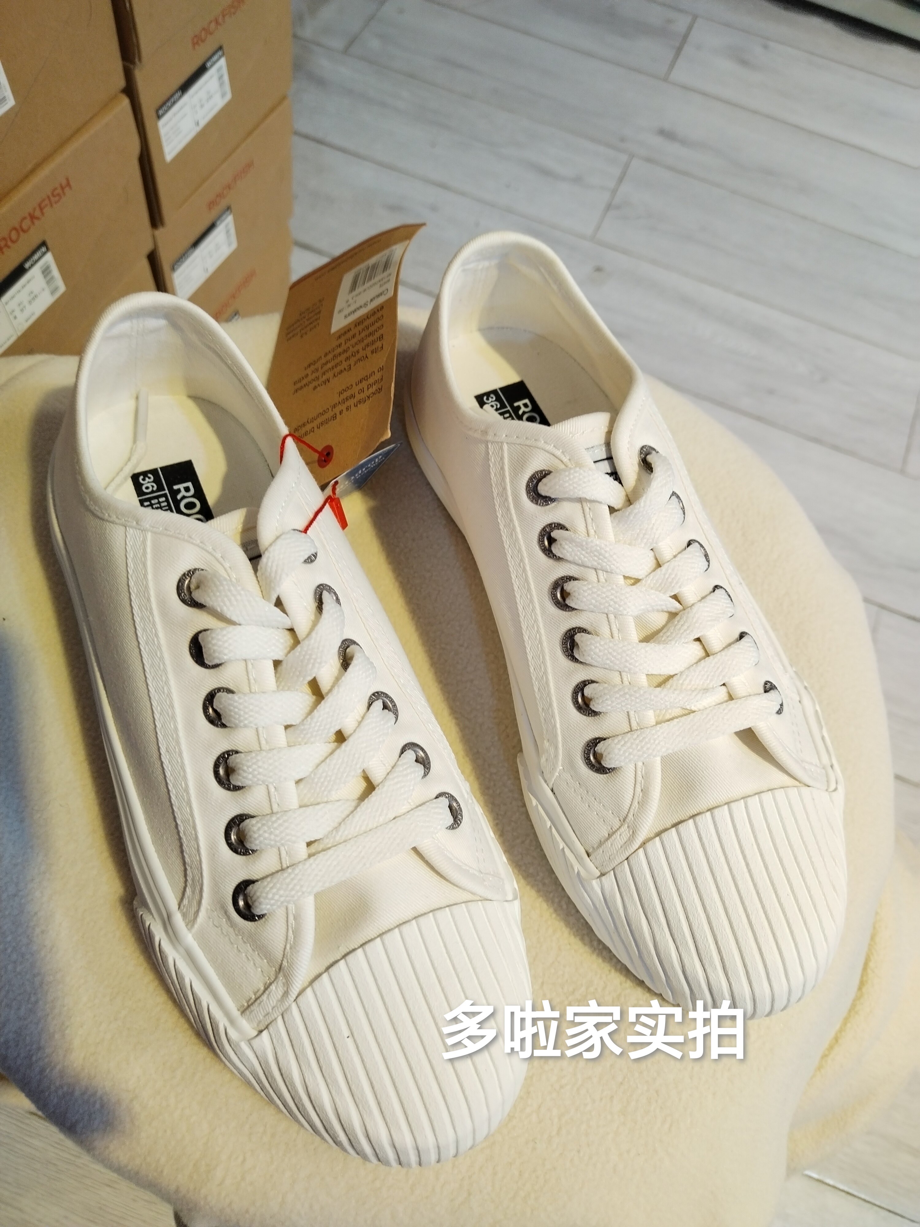Rockfish帆布鞋女款系带女鞋春夏休闲鞋板鞋小白鞋文艺饼干微瑕疵