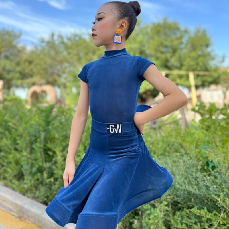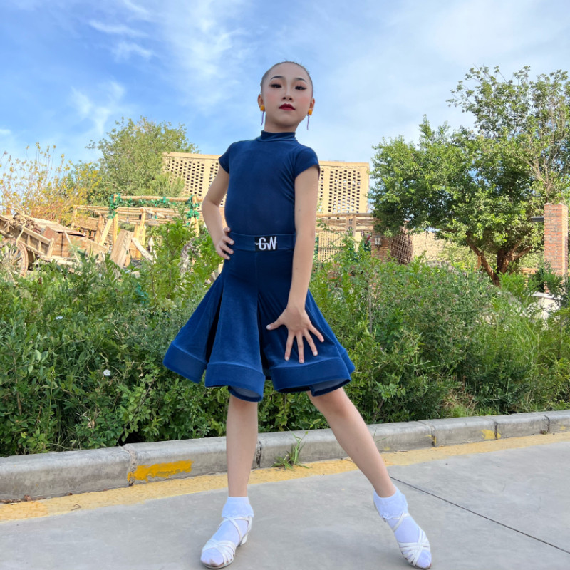 GW夏季少儿拉丁舞服装女童标准规定服短袖丝绒分体比赛服考级演出