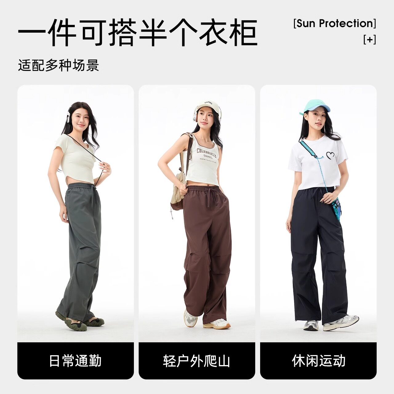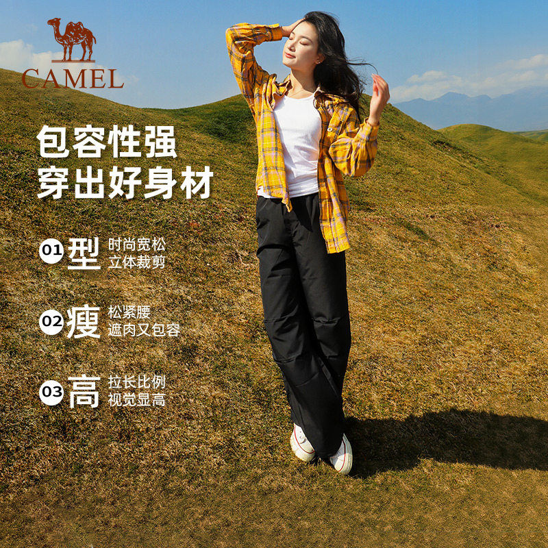 骆驼户外速干伞兵裤女款2026春夏运动登山裤宽松休闲阔腿工装裤子
