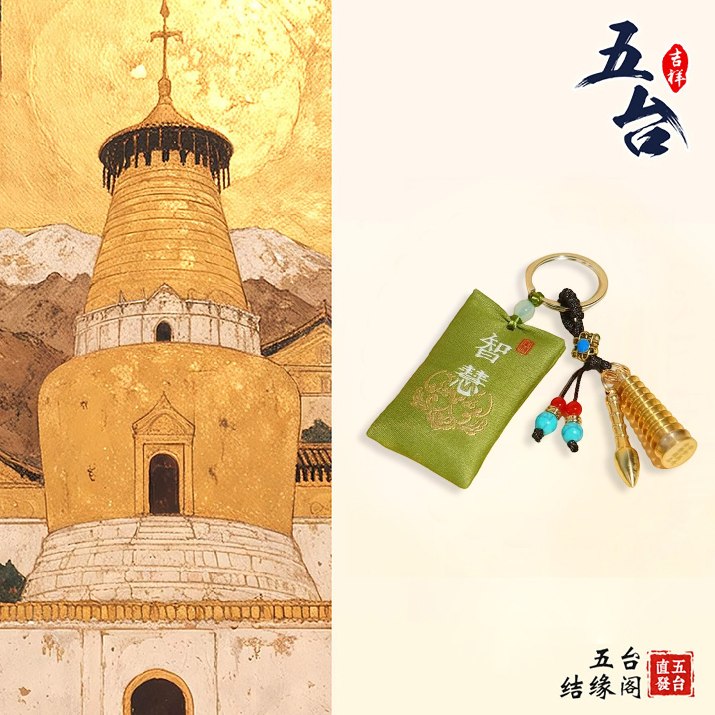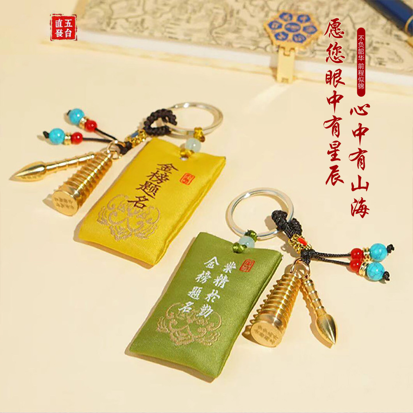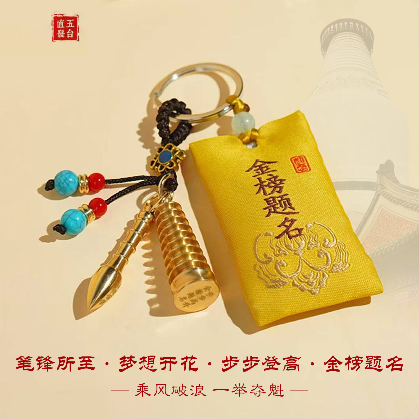 五台山中高考上岸金榜题名铜文昌塔钥匙扣香袋包挂件钥匙扣吊坠