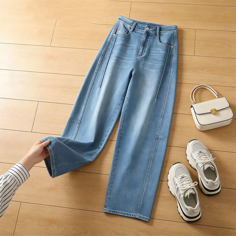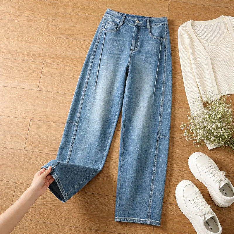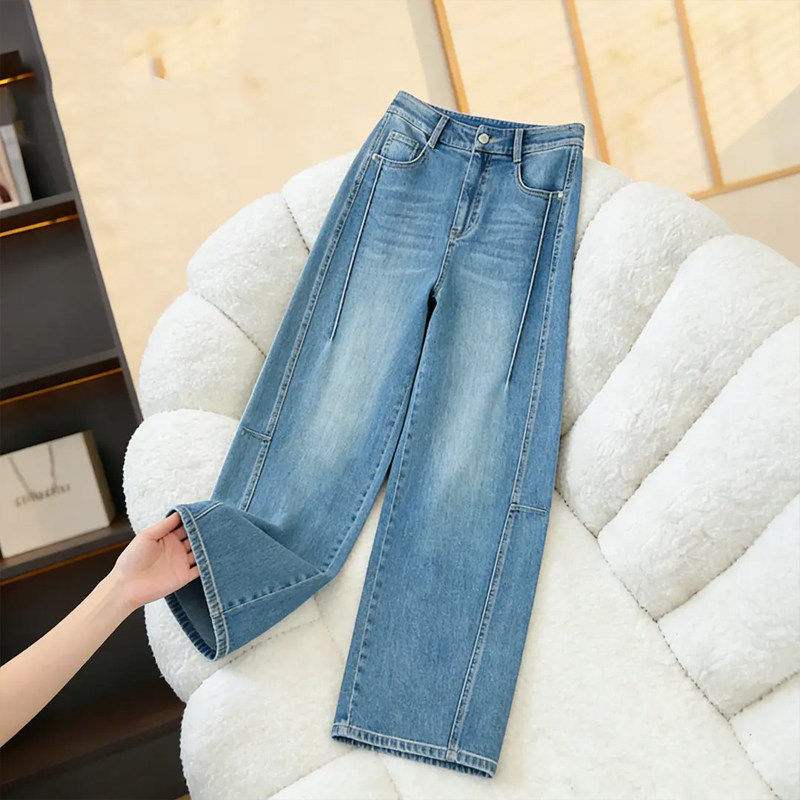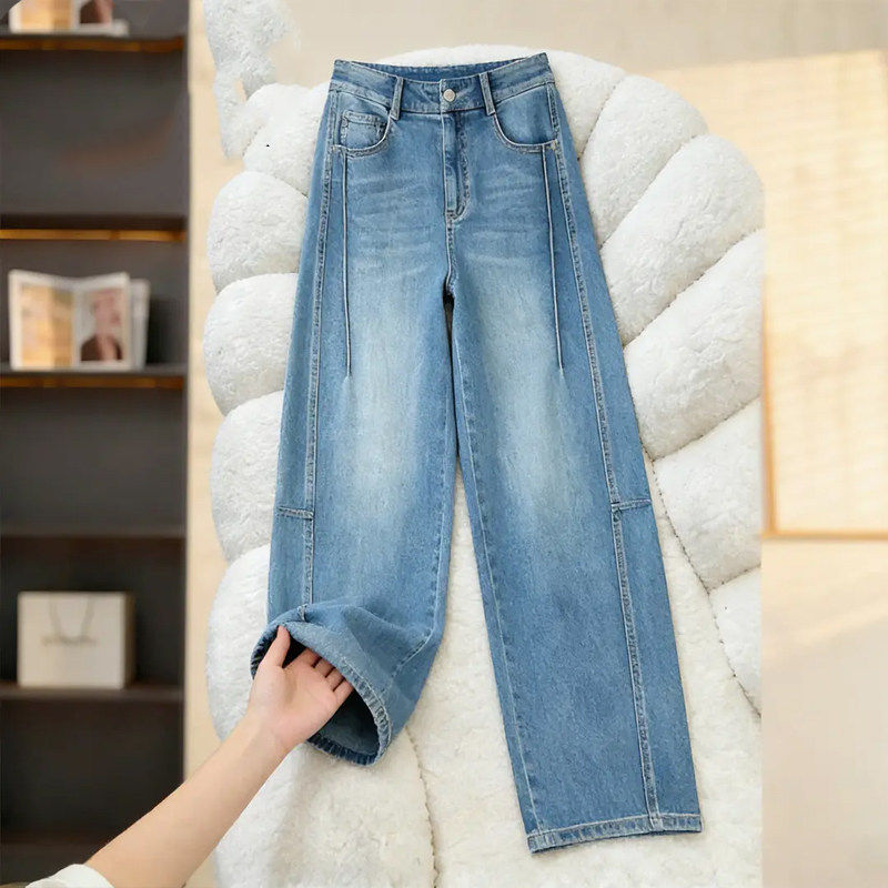 拉夏贝尔镰刀牛仔裤女2026年春夏季新款休闲裤子浅蓝色窄版弯刀裤