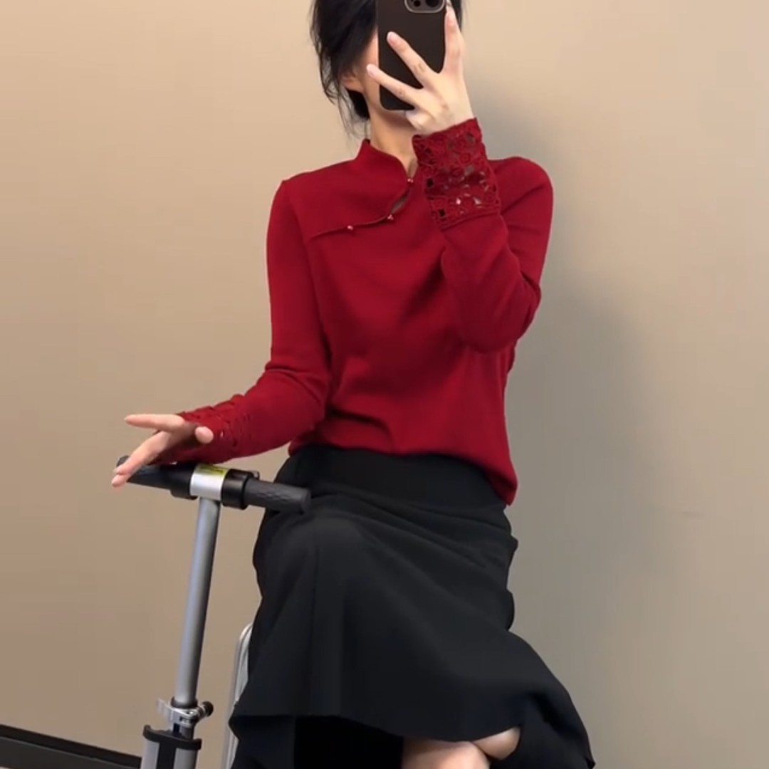 2026年新款独特漂亮显瘦针织上衣女款设计感爆款超火红色休闲毛衣