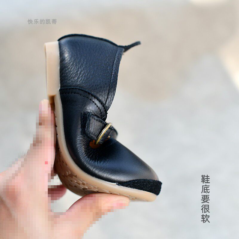 女童头层牛皮鞋女宝宝软底豆豆鞋舒适洋气公主鞋小女孩真皮奶奶鞋