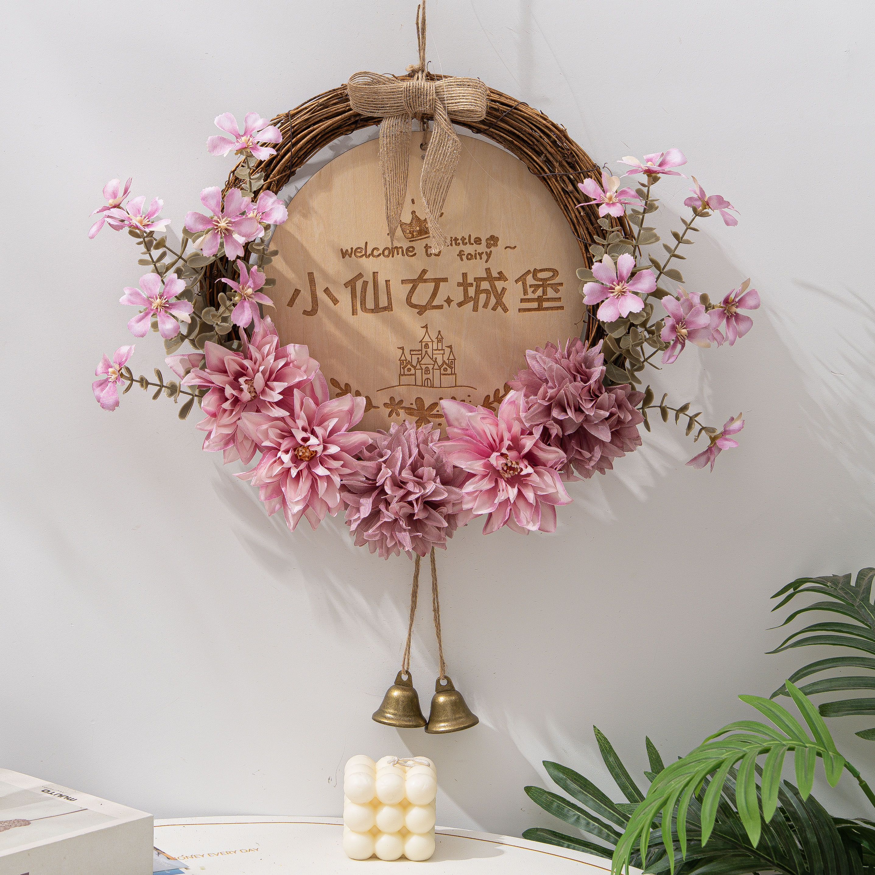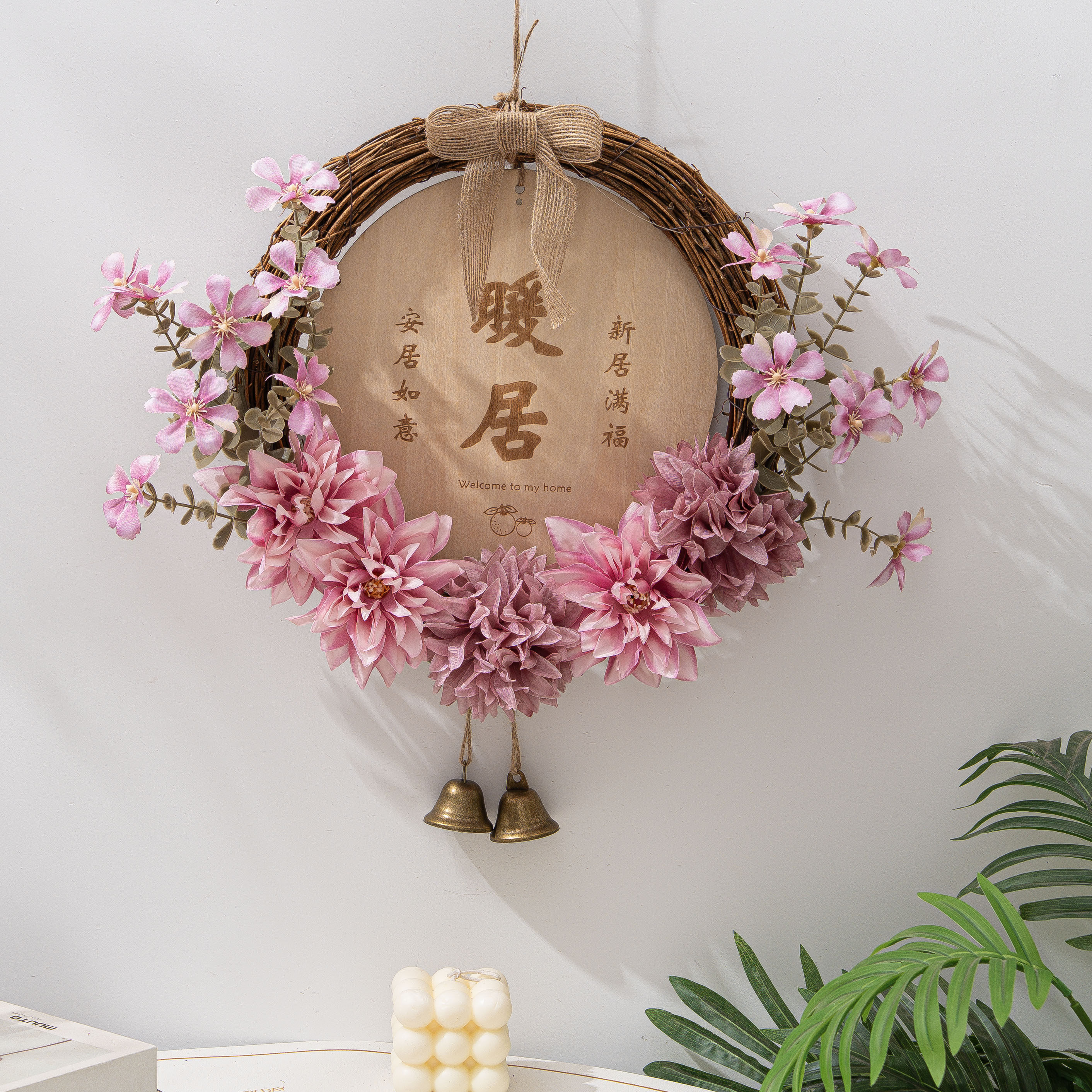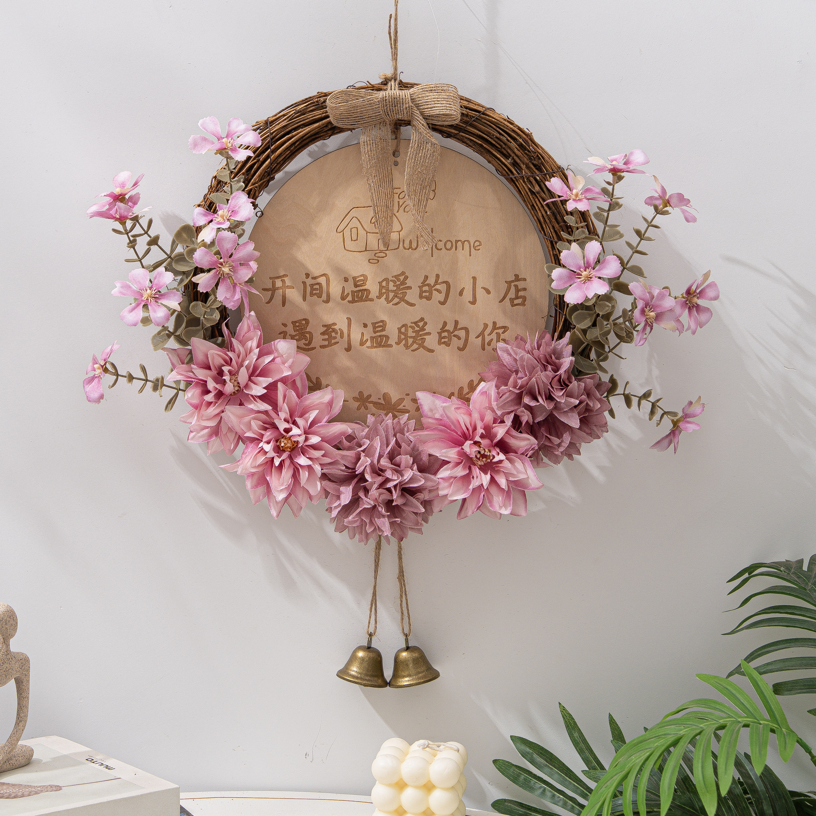 墙面装饰创意仿真花环挂饰客厅卧室墙壁挂件店铺创意挂牌遮丑吊饰