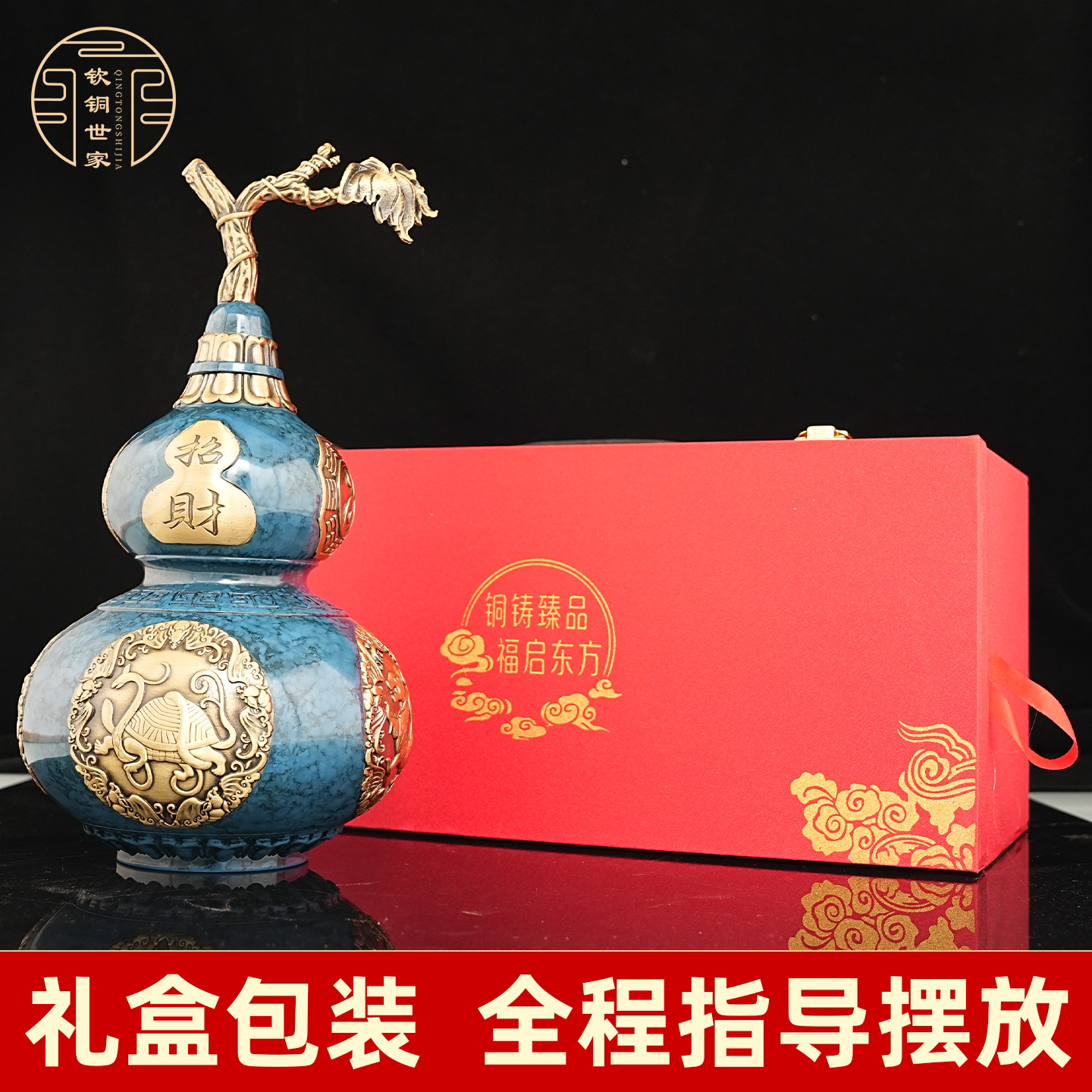 黄铜葫芦摆件开盖空心四神兽朱雀玄武青龙白虎家居客厅办公室装饰
