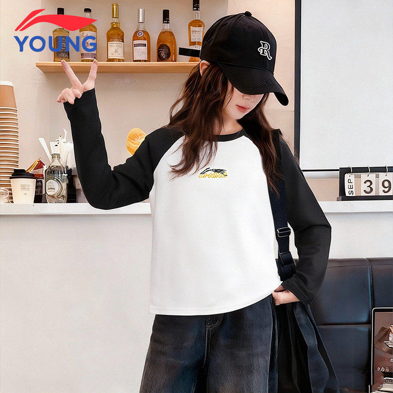 李宁儿童长袖春季2026新款女童上衣女孩大童春装超好看打底衫内搭