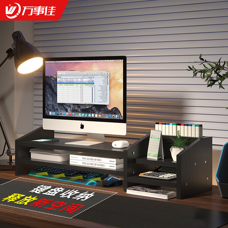 键盘收纳黑色办公室桌面电脑增高架台式显示器屏幕垫高底座置物架