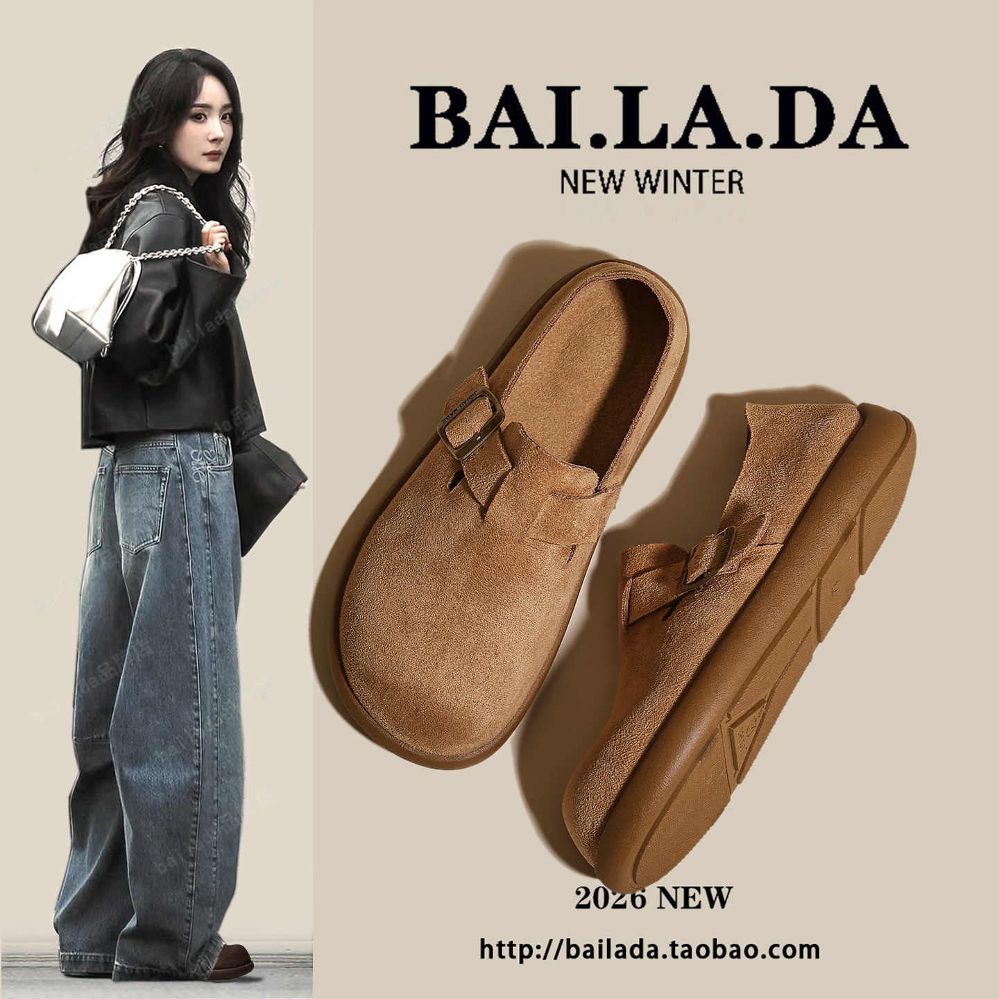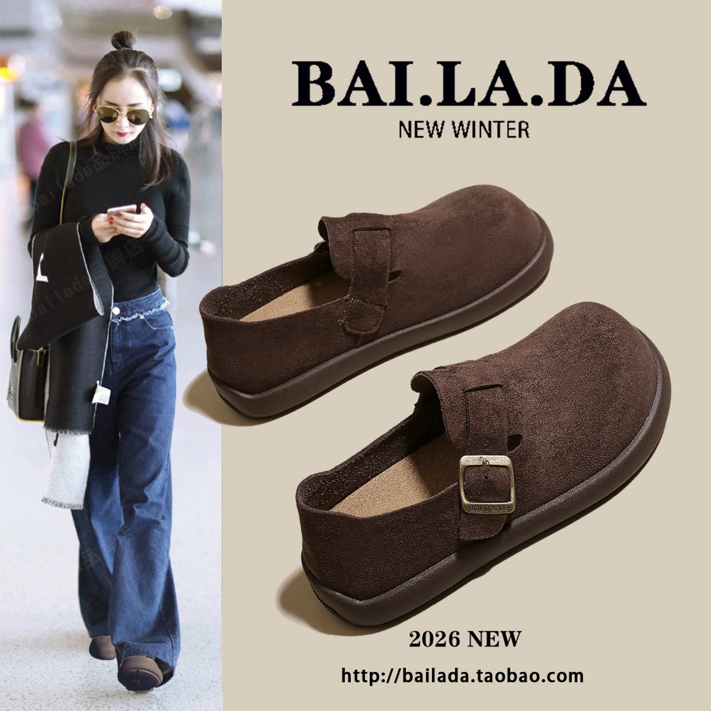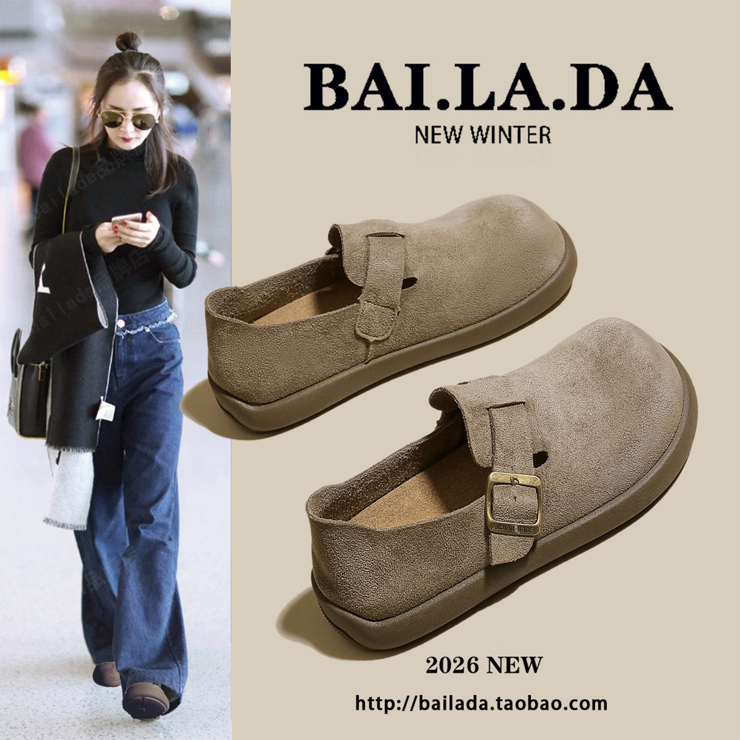 爆款一脚蹬勃肯鞋女款2026年春季新款超火的平底百搭鞋子女鞋单鞋