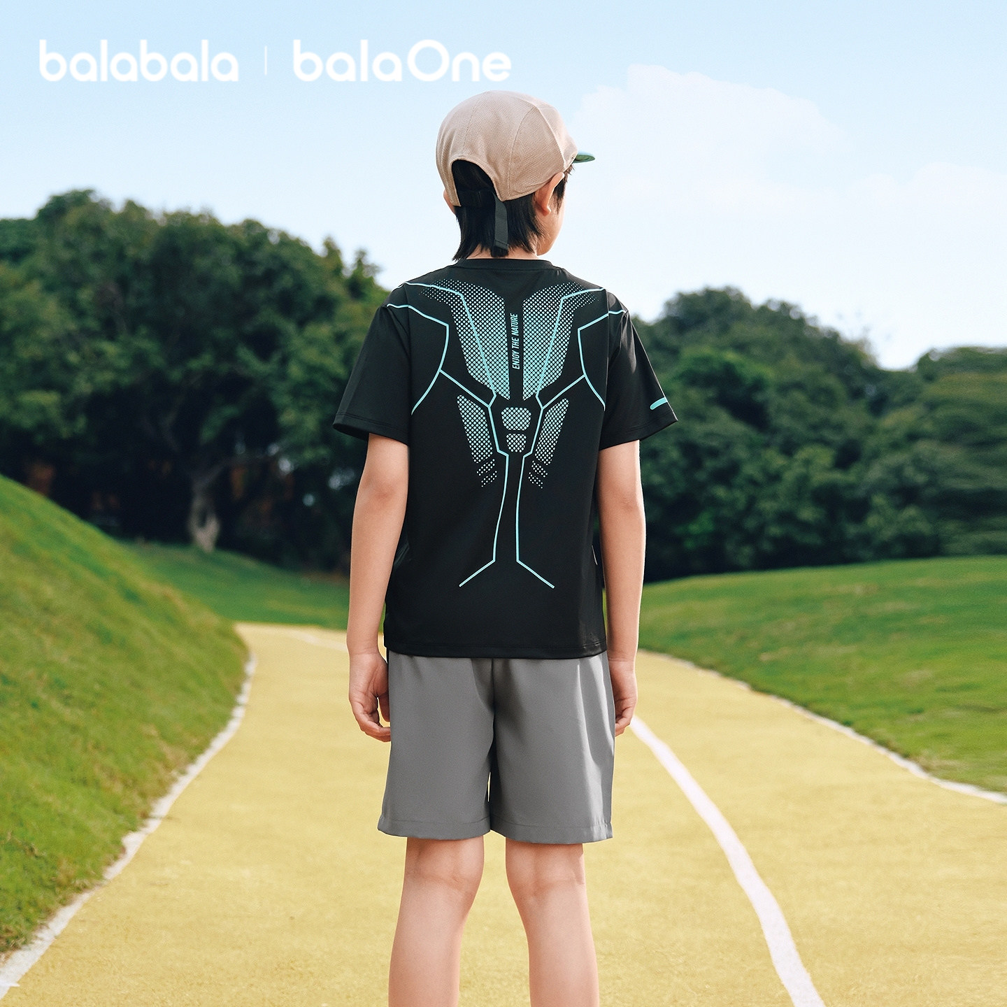 巴拉巴拉男童短袖套装儿童中大童两件套2026新款夏装速干舒适上衣