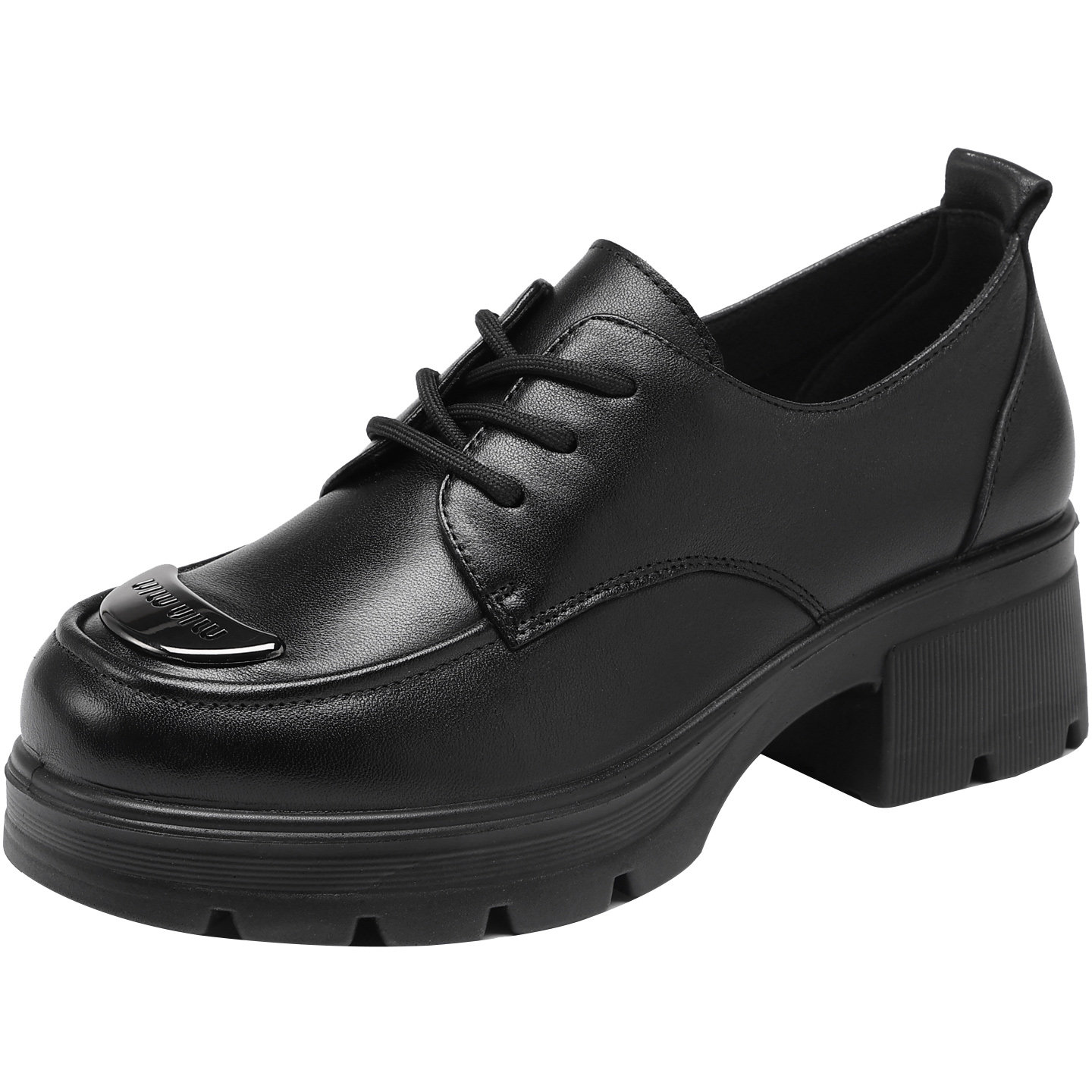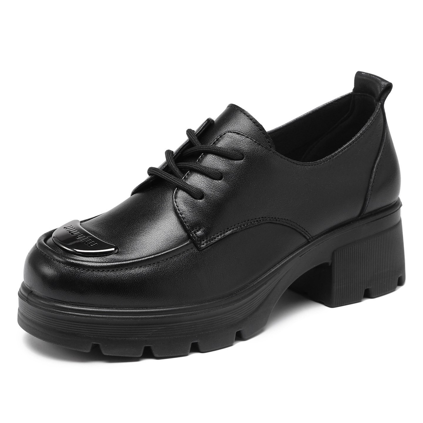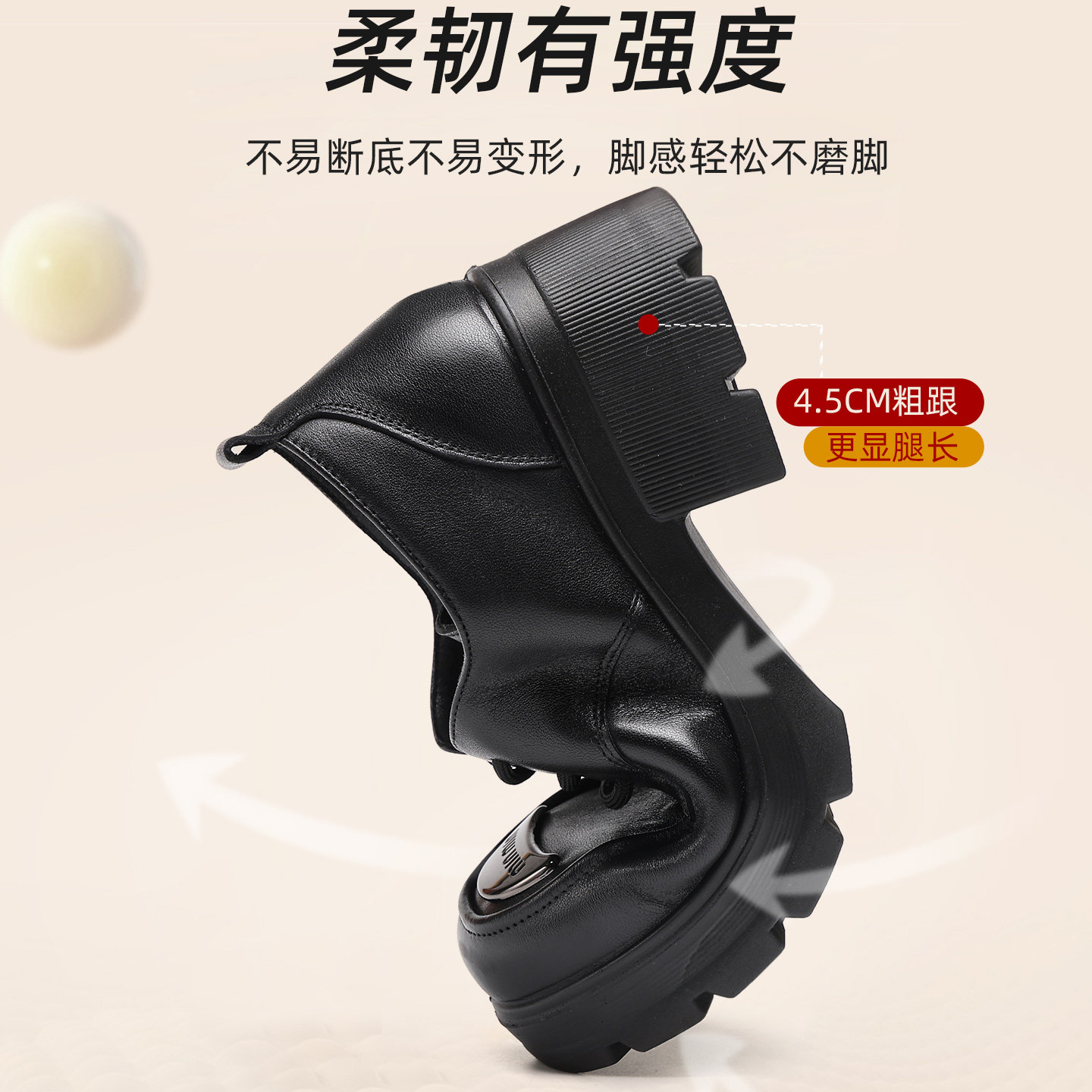 头层牛皮女式皮鞋半高跟真皮软底不累脚中跟女鞋品牌女装厚底单鞋